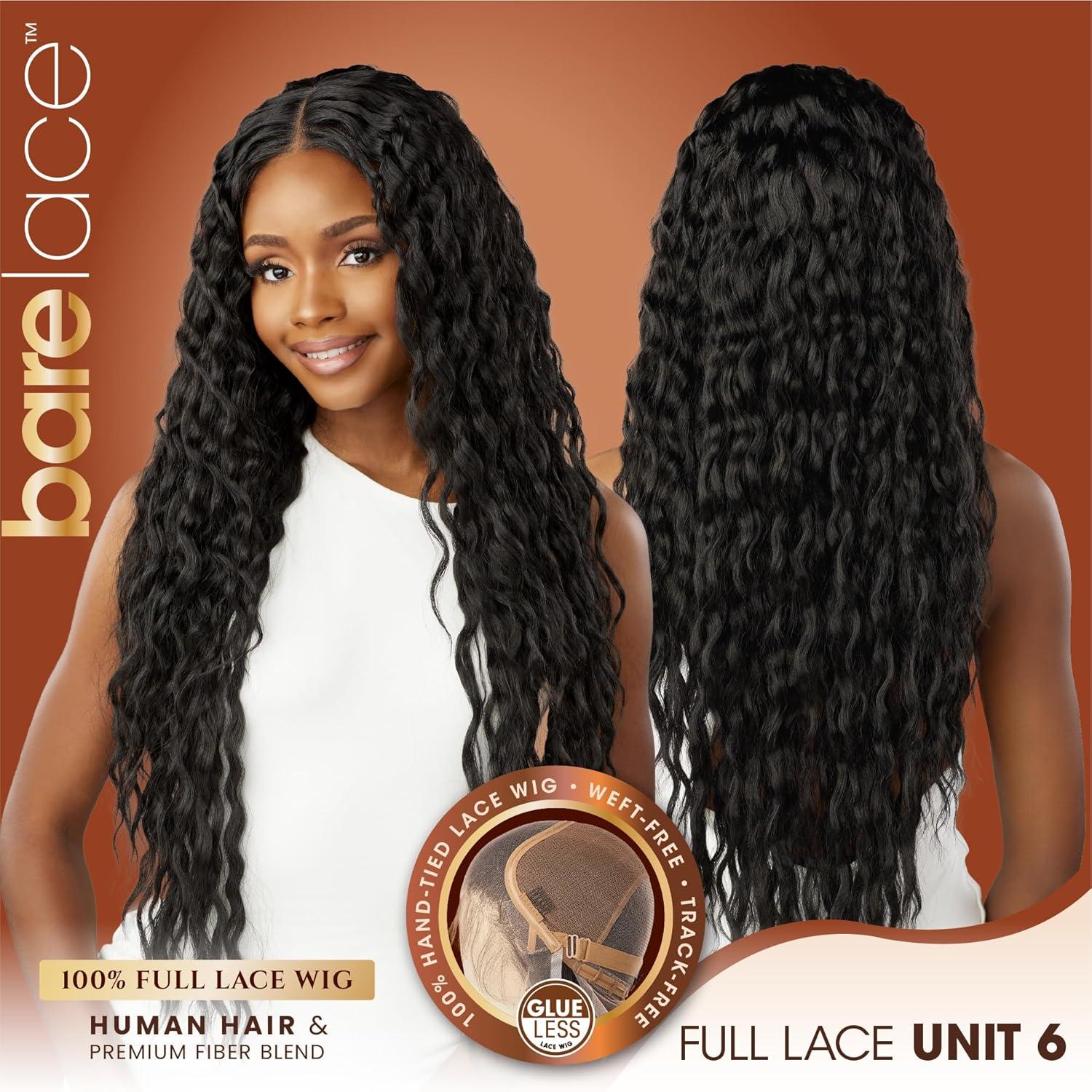 Sensationnel Bare Lace Fulllace Wig – Unit 6 Human Hair Blend All Lacefrontal Glueless Synthetic 180 Degree Preplucked Hairline (1 JETBLACK)(CH30)