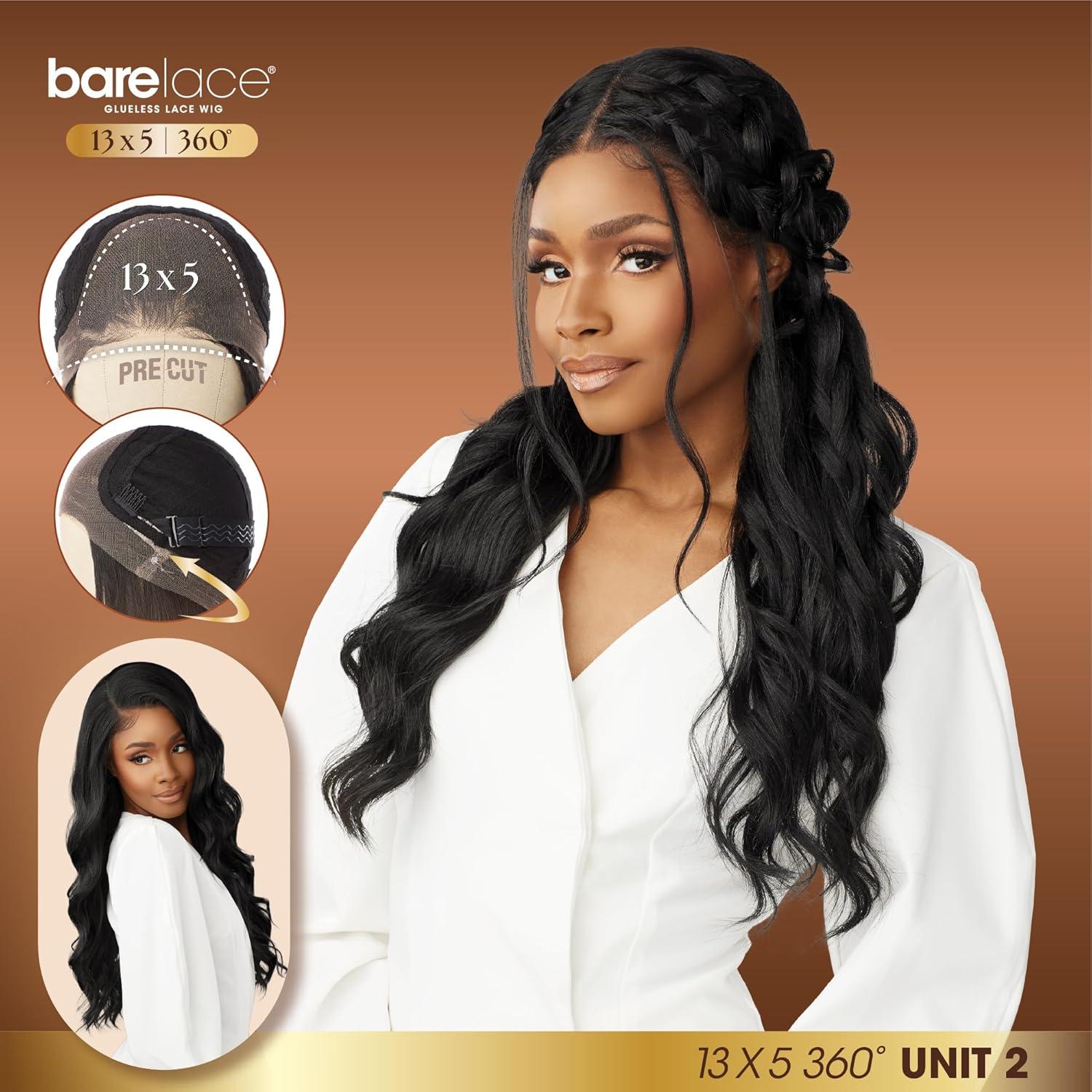 Sensationnel Barelace 13X5 360 Lace Wig – Unit 2 Glueless Human Hair Blend Ear-to-Ear Deep Parting Pre Cut Hairline (1 JETBLACK)(2 DARKBROWN)