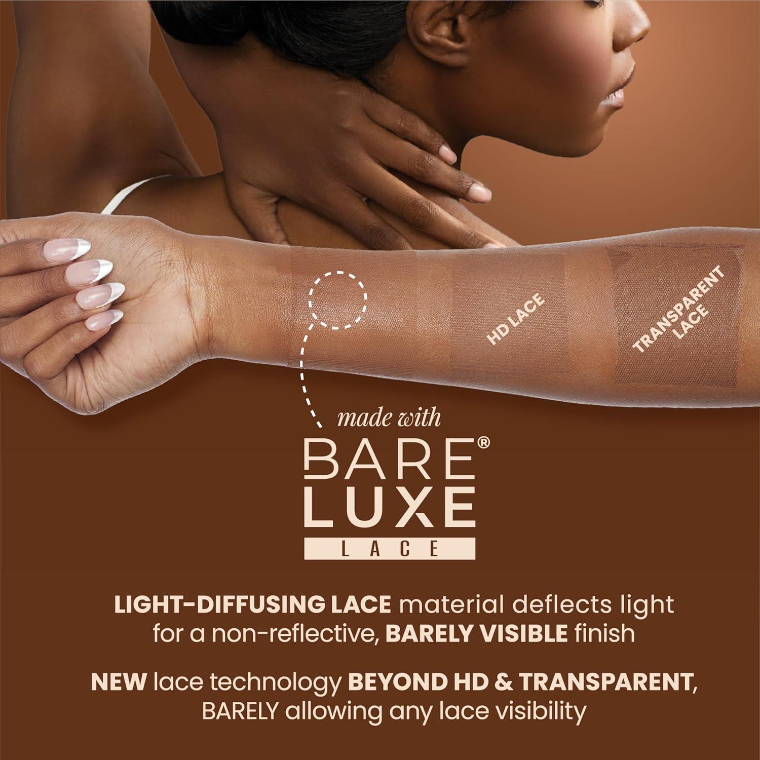 Lace so thin it looks like skin. Sensationnel human hair & fiber blend glueless lace Bare luxe lace wigs has a wide 5 inch deep parting lace wig that has the freedom to part anywhere within the lace area. It offers the signature Bare lace pre-plucked natural density hairline and ear to ear lace coverage which makes parting even more natural. Bare luxe lace features a 2040 effect which has a larger grid pattern and Thinner lace design which makes the lace more transparent clear while also making it Non-reflective and Non-lifting. Barelace also comes in a variety of colors and special secret highlight colors to choose from.