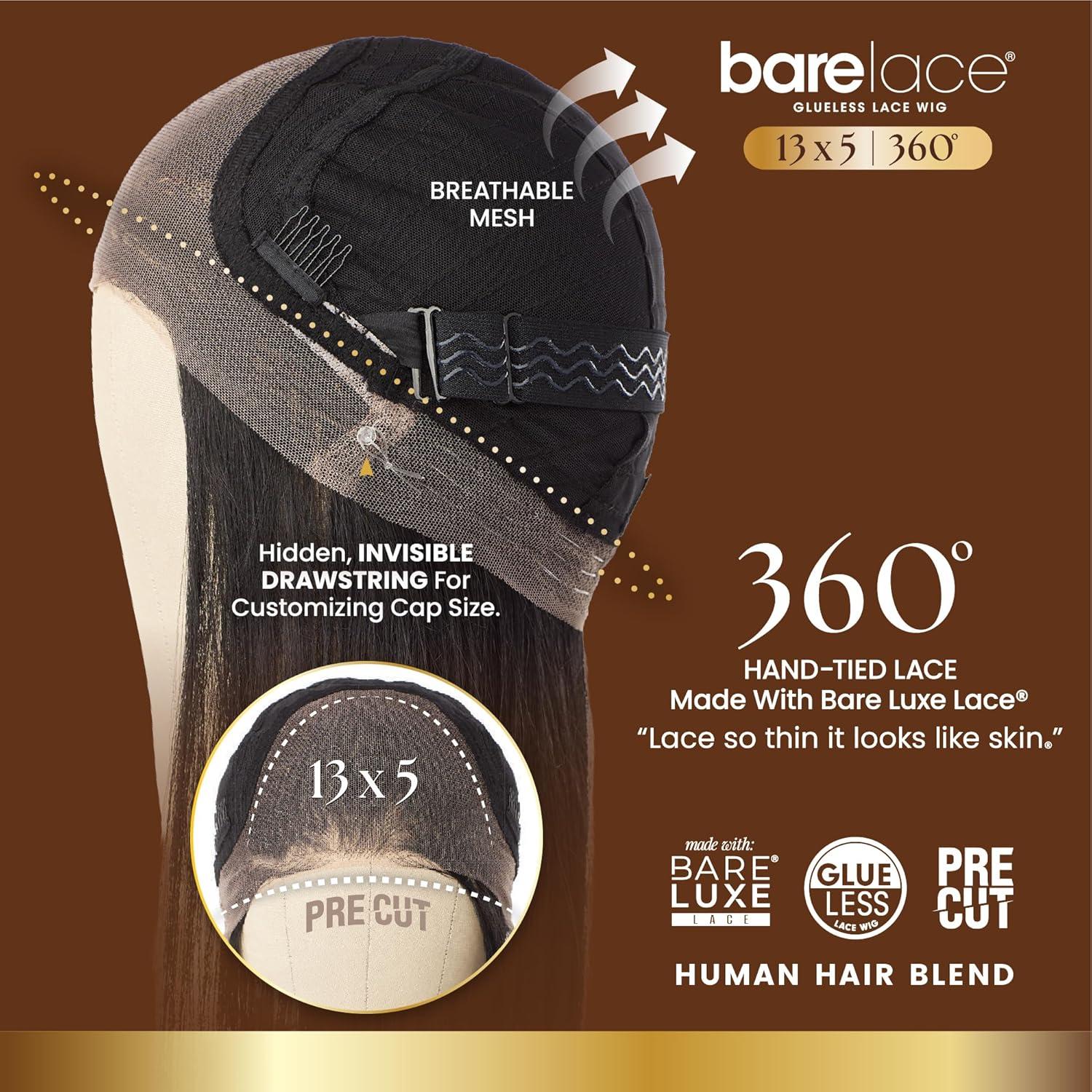 Sensationnel Barelace 13X5 360 Lace Wig – Unit 3 Glueless Human Hair Blend Ear-to-Ear Deep Parting Pre Cut Hairline (1 JETBLACK)(2 DARKBROWN)