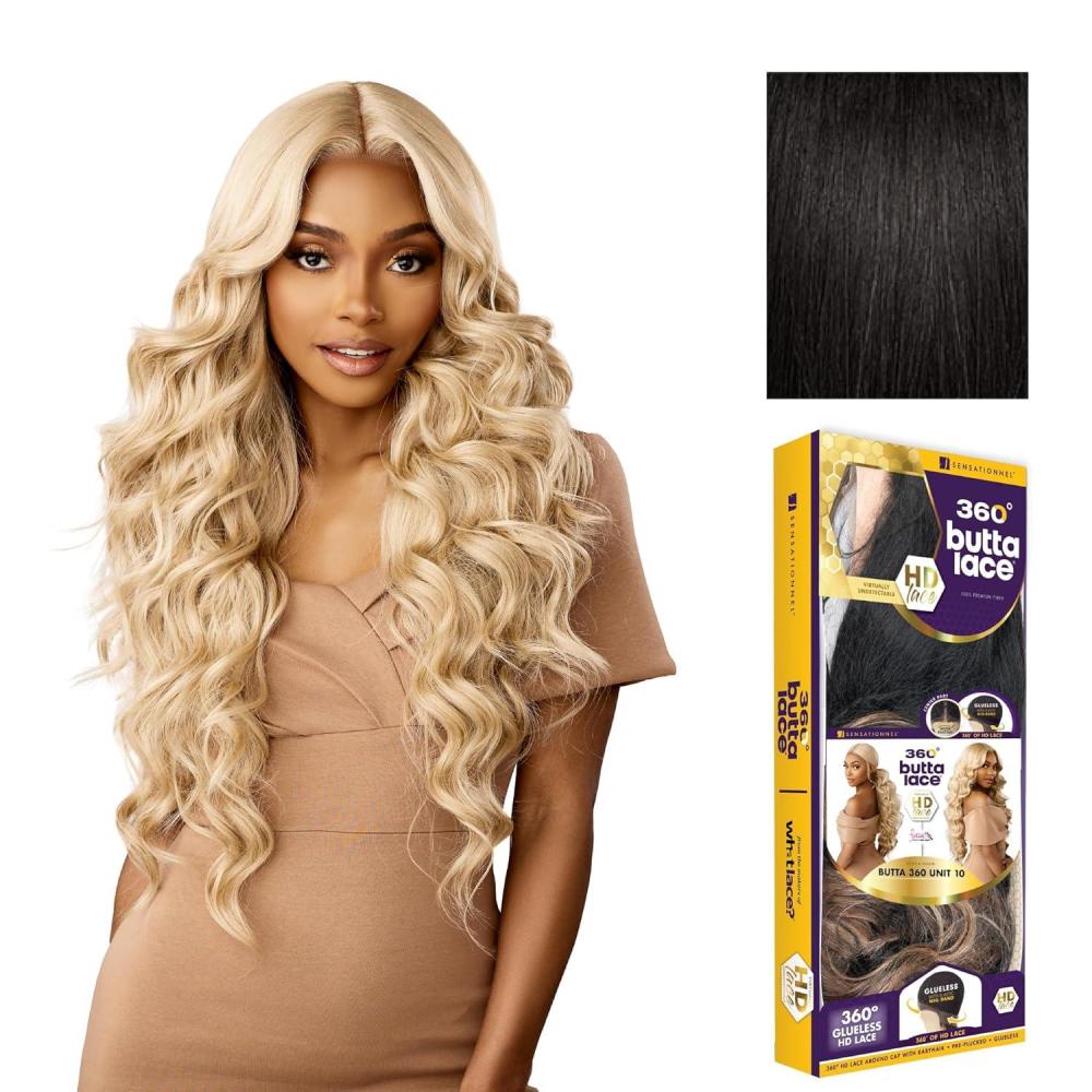 Sensationnel Butta 360 Lace Wig – Unit 10 Wider Parting 360 Degree Lace Glueless Synthetic Preplucked Hairline (1 JETBLACK)(1B OFFBLACK)