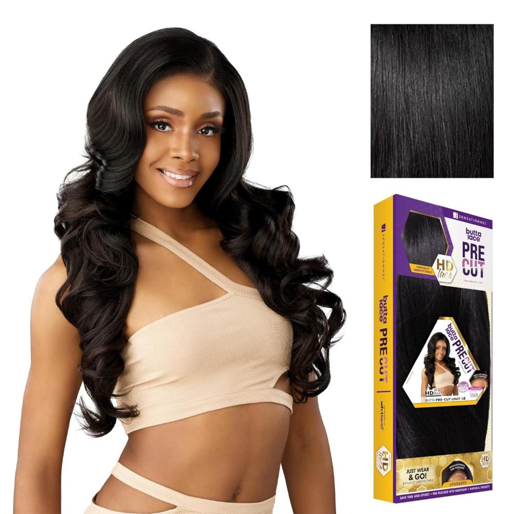 Sensationnel Butta Lace Precut Wig – Unit 18 Glueless Extra Wide 5 Inch Deep Parting Synthetic Pre Tweezed Smaller Knot Hairline (1 JETBLACK)(1B OFFBLACK)