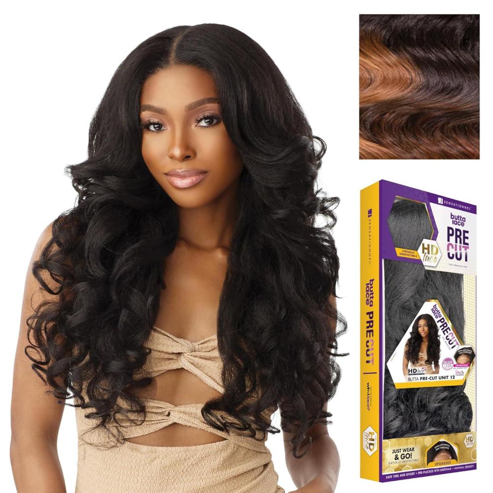 Sensationnel Butta Lace Precut Wigs – Unit 12 Glueless Extra Wide 5 Inch Deep Parting Synthetic Pre Tweezed Smaller Knot Hairline (1 JETBLACK)(2 DARKBROWN)