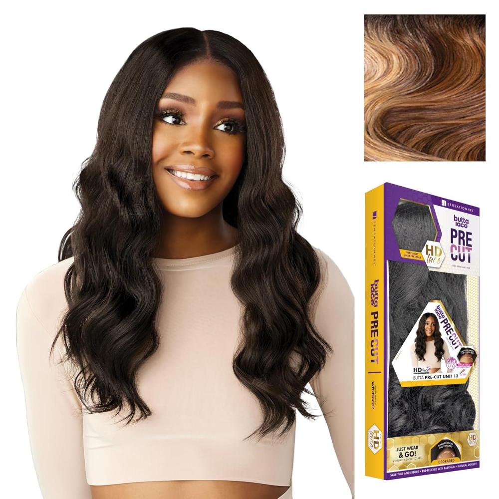 Sensationnel Butta Lace Precut Wigs – Unit 13 Glueless Extra Wide 5 Inch Deep Parting Synthetic Pre Tweezed Smaller Knot Hairline (1 JETBLACK)(BALAYAGECARAMEL)