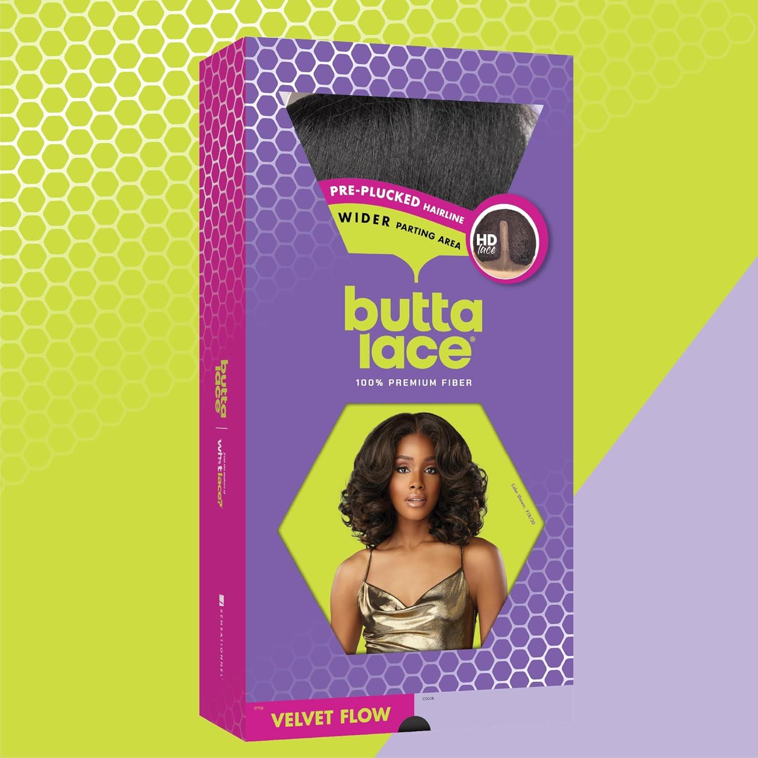 Sensationnel Butta Lace Wigs – Velvet Flow Unit Extra Wide 5 Inch Deep Parting Synthetic Preplucked Hairline Glueless Lacefront (1 JETBLACK)(F1B/30)