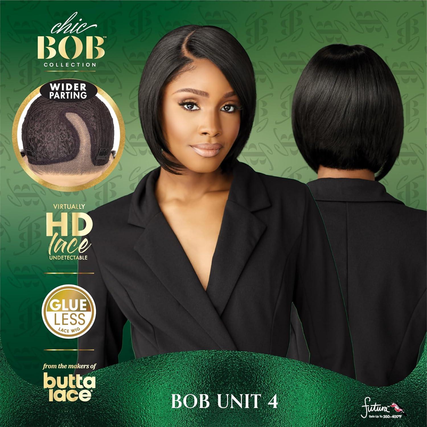 Sensationnel Chicbob Lace Frontwig – Bob Unit 4 Face Framing Glueless Wig Wide 5 Inch Deep Part Synthetic Preplucked Hairline (1 JETBLACK)(1 JETBLACK)