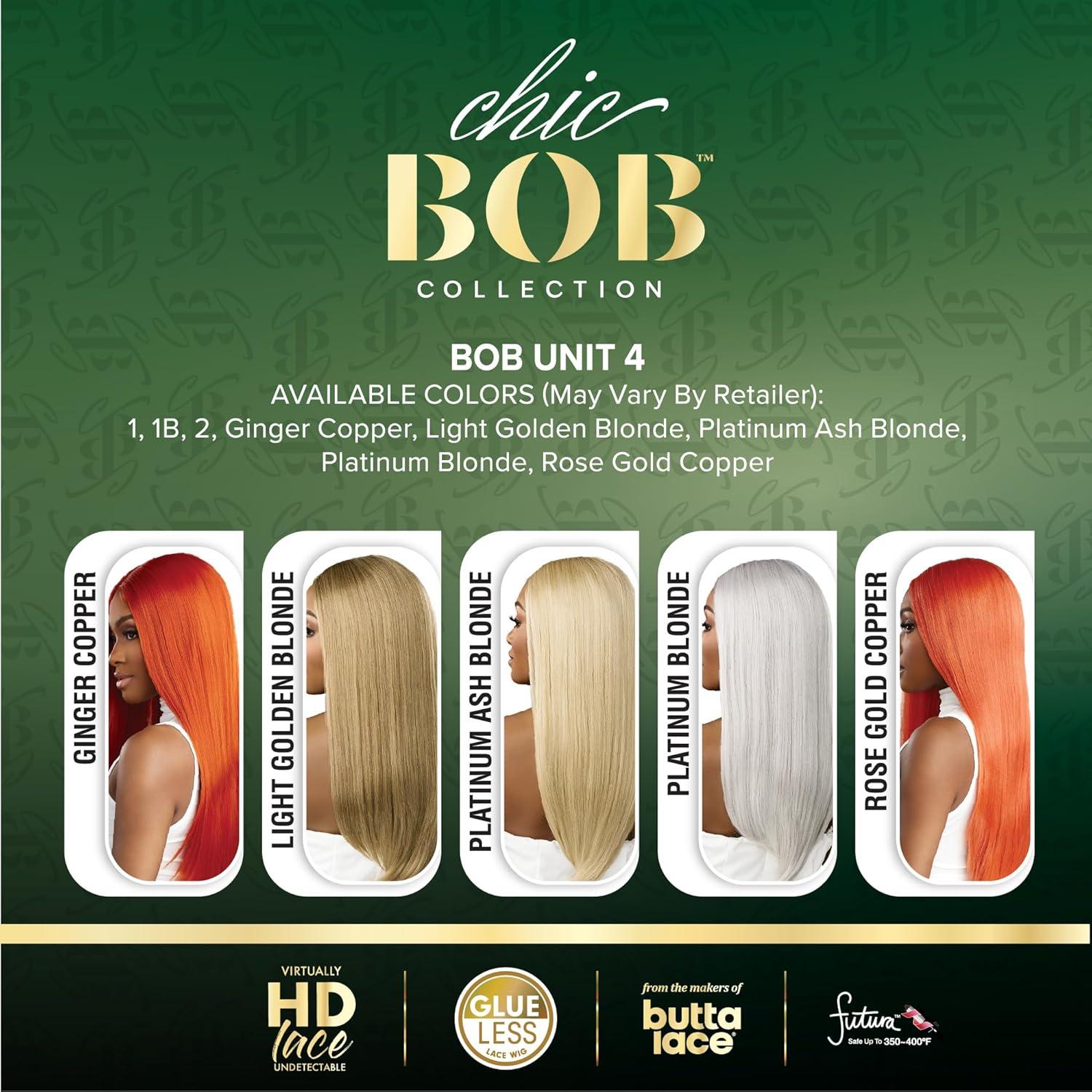 Sensationnel Chicbob Lace Frontwig – Bob Unit 4 Face Framing Glueless Wig Wide 5 Inch Deep Part Synthetic Preplucked Hairline (1 JETBLACK)(ROSEGOLDCOPPER)