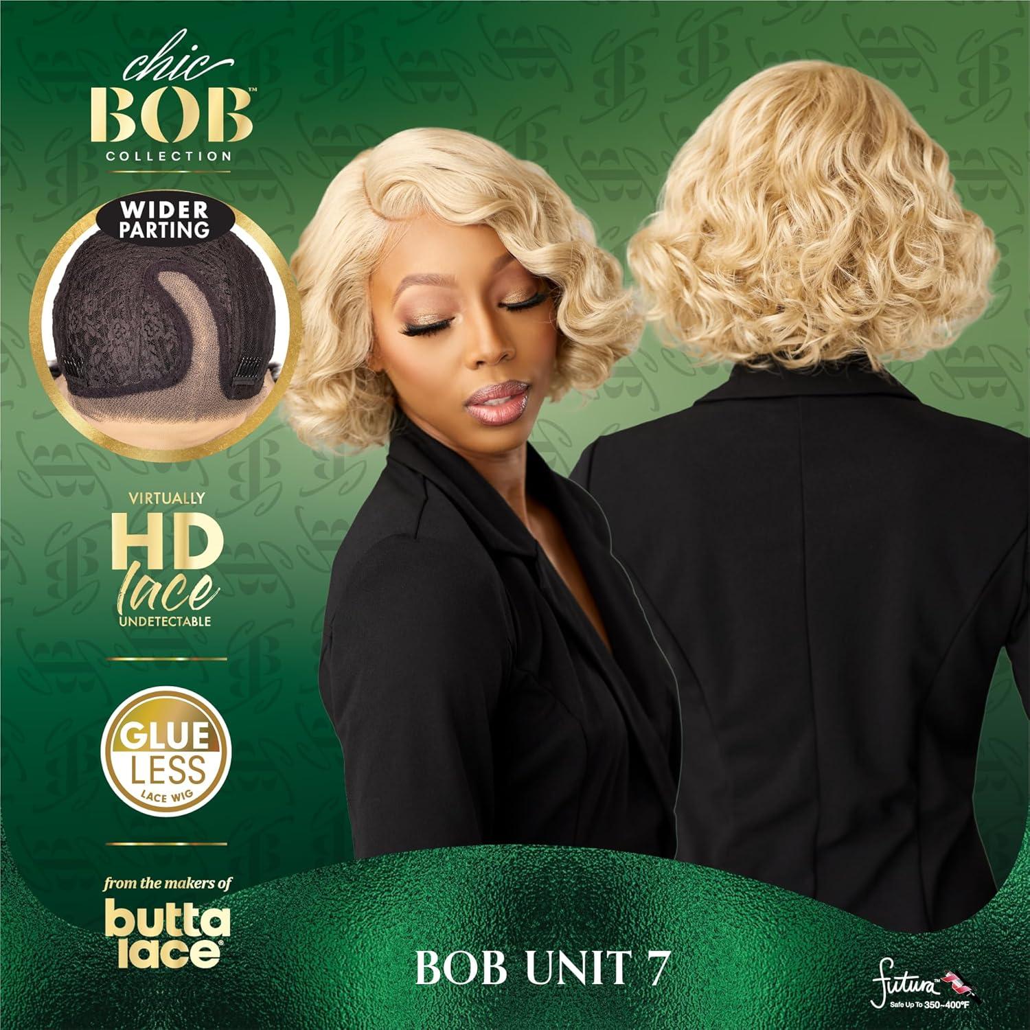 Sensationnel Chic Bob is from the members of Butta lace. Chicbob is known for its virtually undetectable hd lace that seamlessly melts like butter into most skin tones. It is a great option for beginners and longtime wig wearers alike who are looking for a quick and easy application. Our chic bob lace units have a larger parting area in the shape of a triangle that gives you more parting space. Butta ChicBob lace also features a wide 5 inch deep part, signature what lace natural pre-plucked hairline, and hd lace with baby hairs. Our butta chicbob lace wigs feature ear to ear lace, wider parting, and are made with synthetic fibers that give a natural look to hair and comes in an array of basic and special flamboyage and champagne blonde colors.