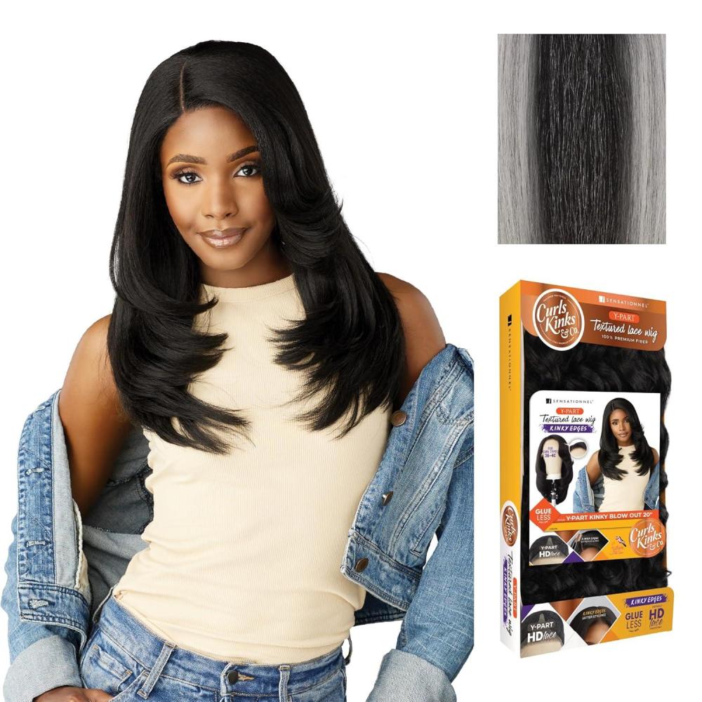 Sensationnel Curls Kinks and Co Kinkyedges Wig – Kinky Blow Out 20 Inch Y Part Lace Natural Kinky Edge textured Hairline for Natural 3B to 4C Hair Textures (F1B/30)(F1B/33)