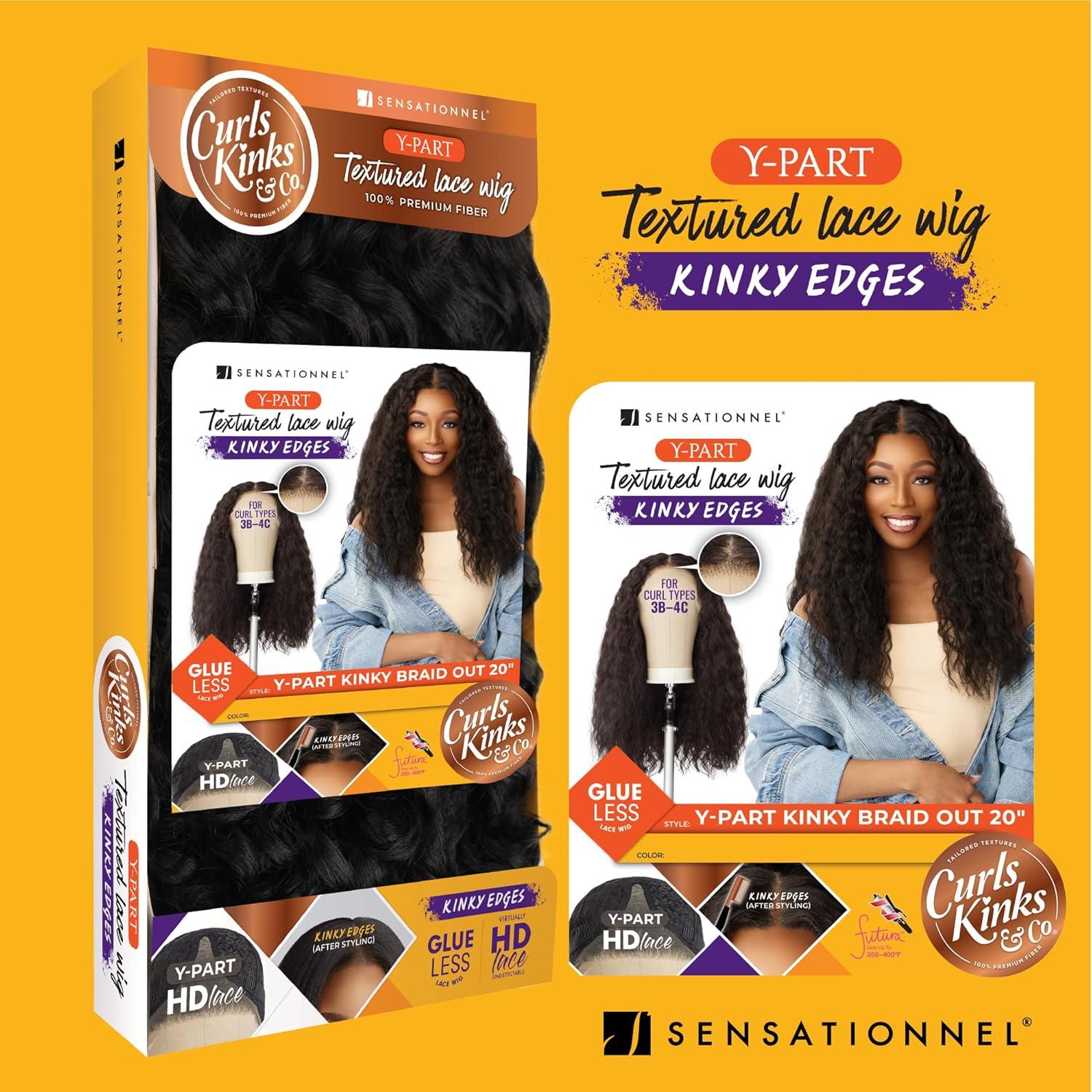 Sensationnel Curls Kinksandco Kinkyedges Wig – Kinky Braid Out 20 Inch Y Part Lace Natural Kinkytexture Edged Hairline for Natural 3C to 4C Hair Textures (1 JETBLACK)(2 DARKBROWN)