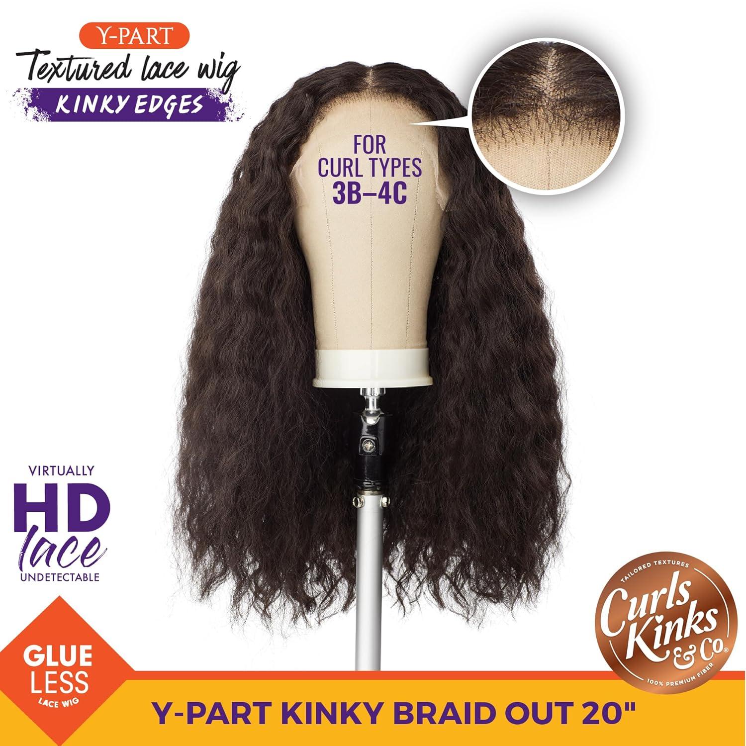 Sensationnel Curls Kinksandco Kinkyedges Wig – Kinky Braid Out 20 Inch Y Part Lace Natural Kinkytexture Edged Hairline for Natural 3C to 4C Hair Textures (1 JETBLACK)(2 DARKBROWN)