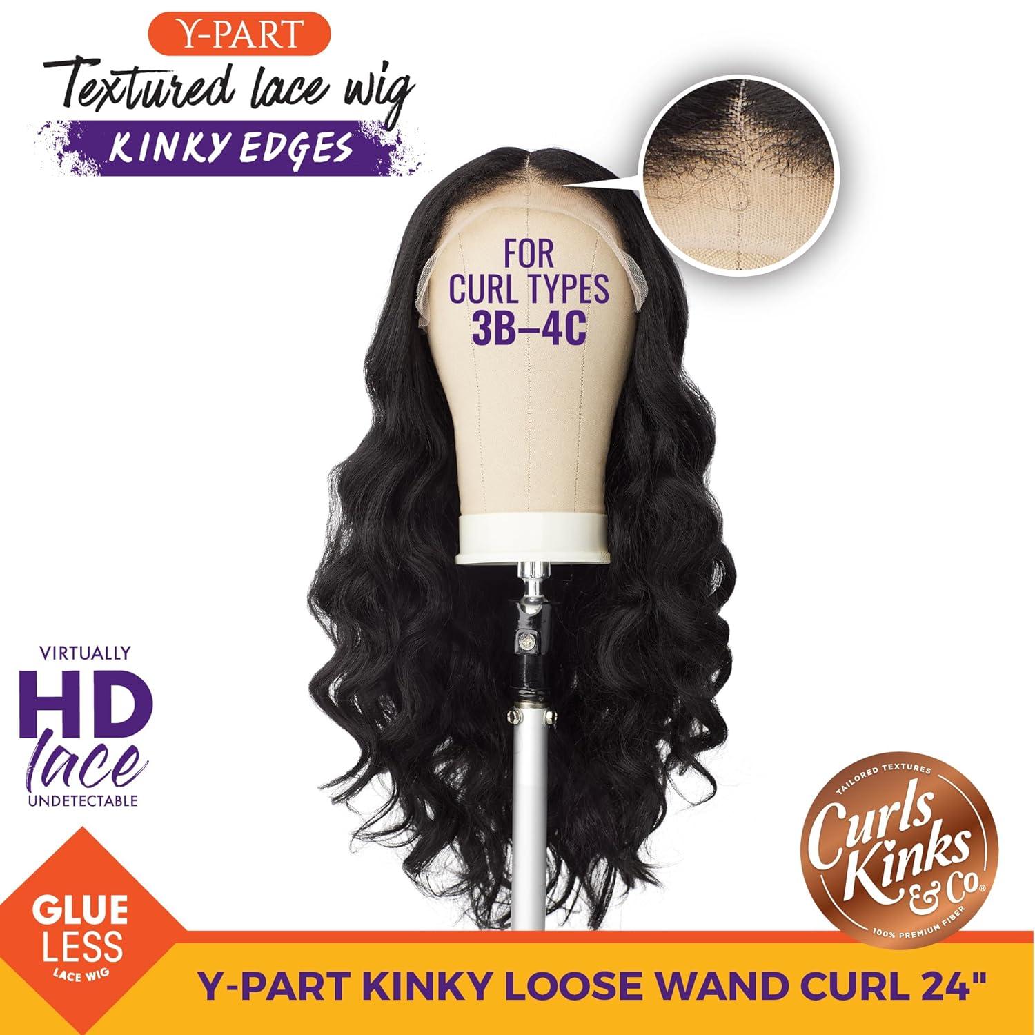 Sensationnel Curls Kinksandco Kinkyedges Wig – Kinky Loose Wand Curl 24 Inch Y Part Lace Natural Kinkytexture Edged Hairline for Natural 3C to 4C Hair Textures (1 JETBLACK)(F1B/350)