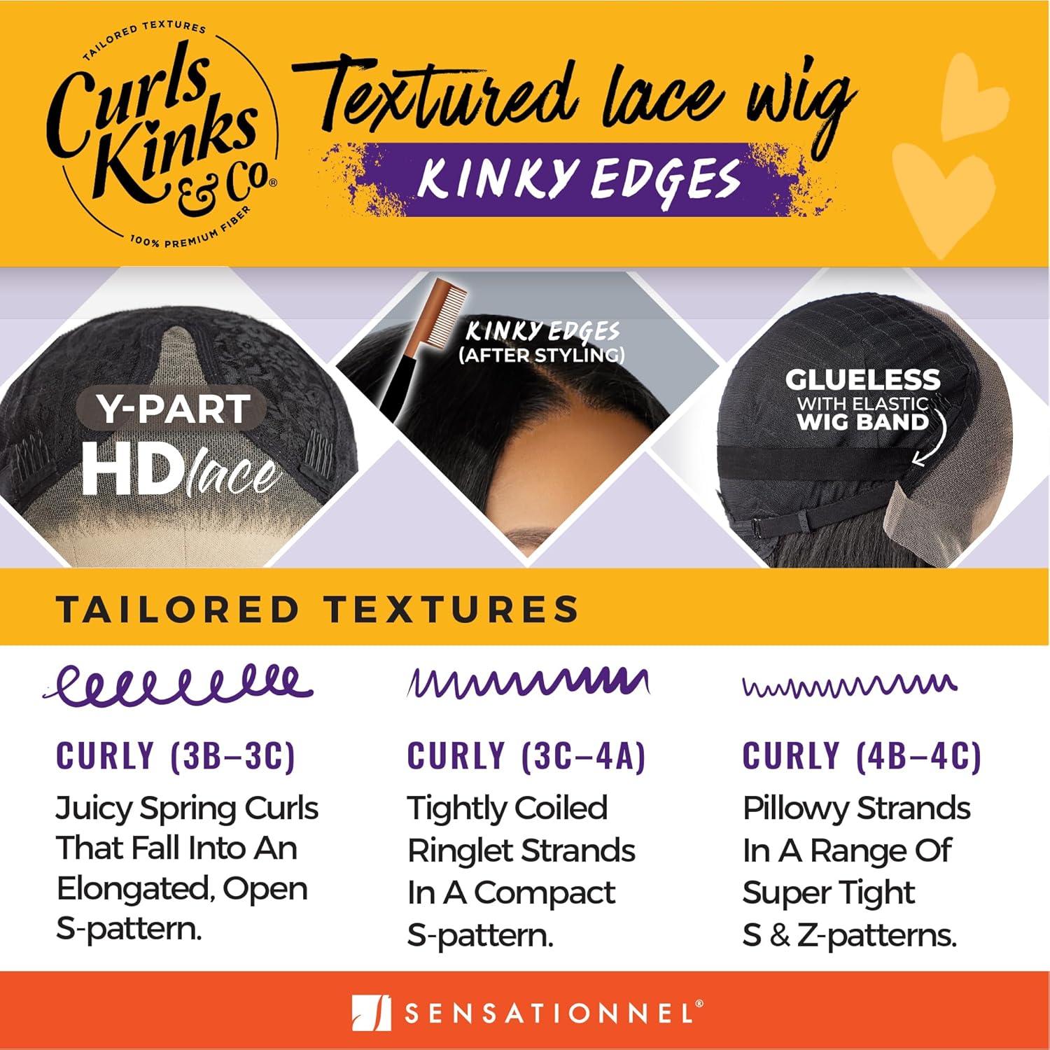 Sensationnel Curls Kinksandco Kinkyedges Wig – Kinky Loose Wand Curl 24 Inch Y Part Lace Natural Kinkytexture Edged Hairline for Natural 3C to 4C Hair Textures (1 JETBLACK)(F1B/BG)
