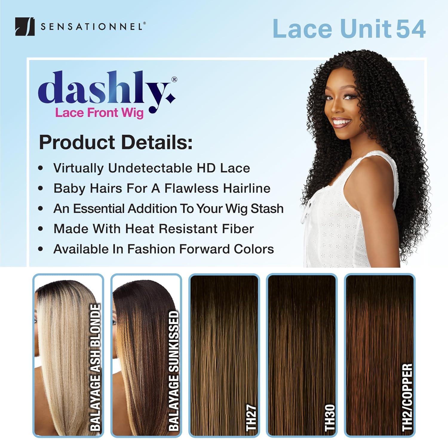 Sensationnel Dashly Lace Front Wig – Unit 54 Hand Tied Laceparting Ear to Ear Synthetic (1 JETBLACK)(TH2/COPPER)