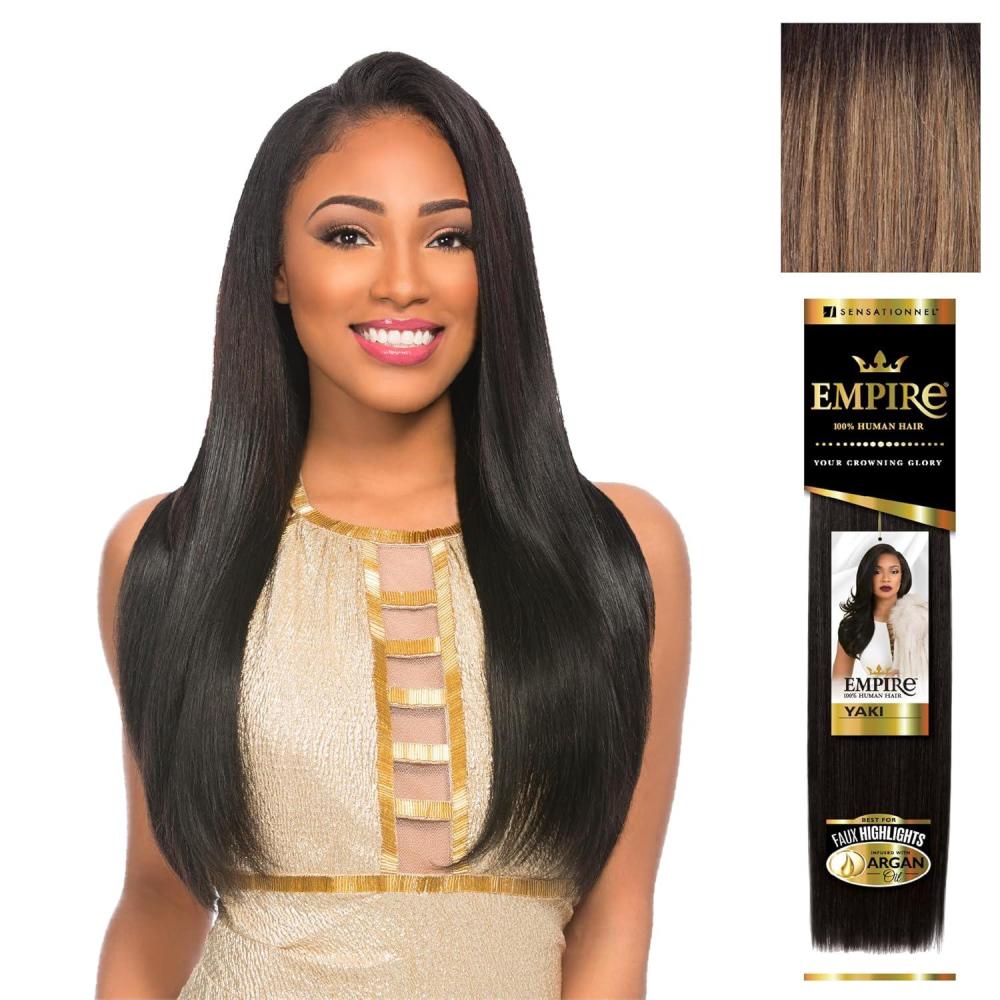Brand : Sensationnel Empire Straight Yaki human weaving hair best for faux highlights faux middle part