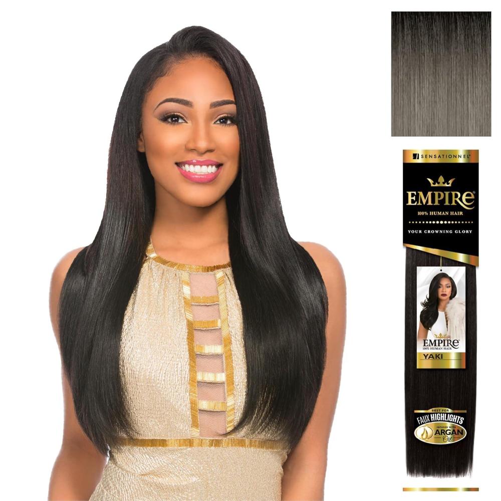 Sensationnel Empire yaki human hair – Tangle Free Weaving for Quick Weave and Sew in Styles for Faux Highlights and Fauxmiddlepart Leave Out – 1 Pack (16 inch, BL/DARKBLONDE)(T1B/MATTEGRAY)