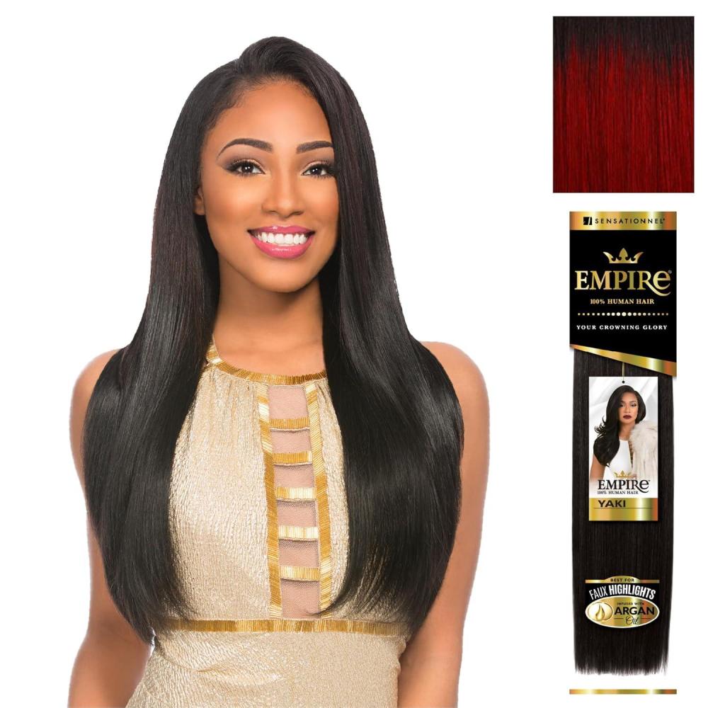 Brand : Sensationnel Empire Straight Yaki human weaving hair best for faux highlights faux middle part