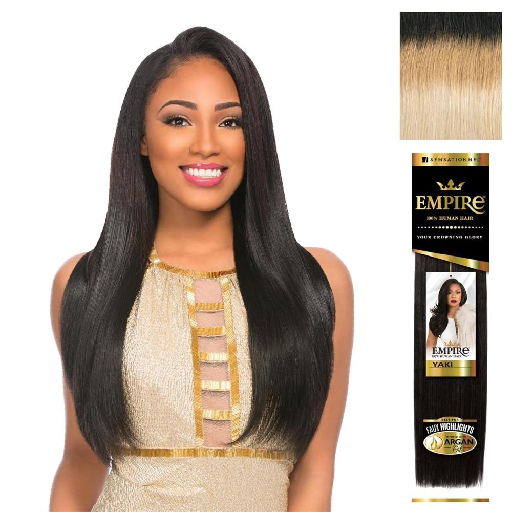Brand : Sensationnel Empire Straight Yaki human weaving hair best for faux highlights faux middle part