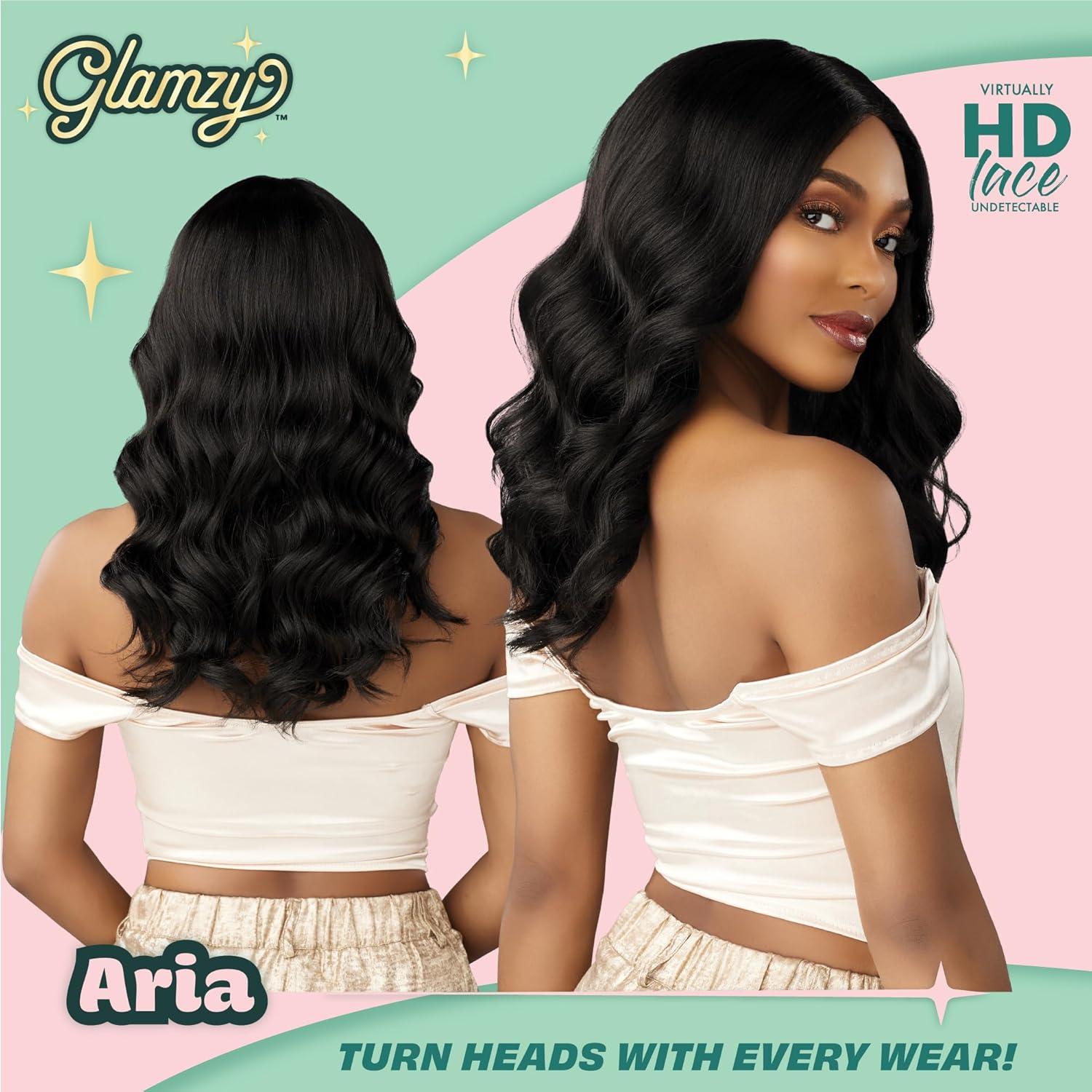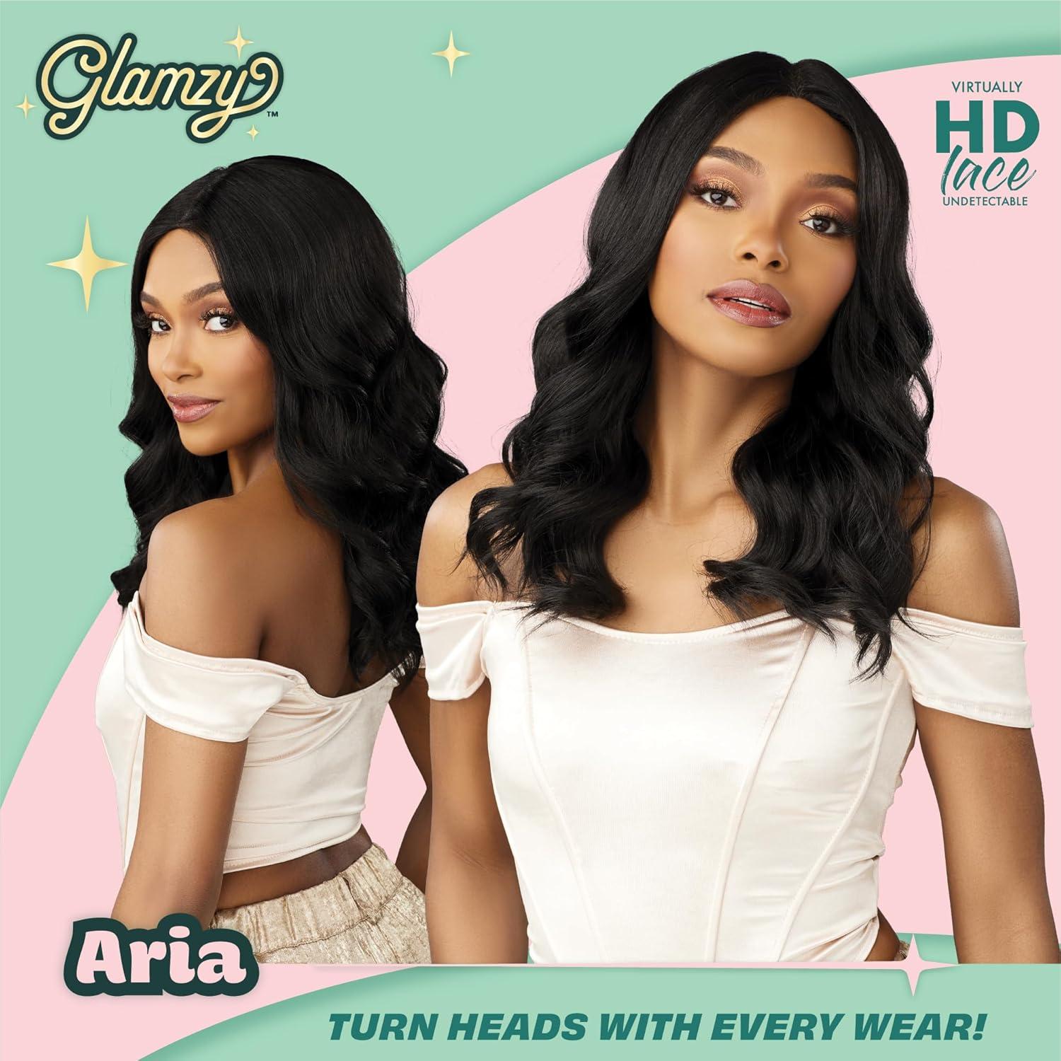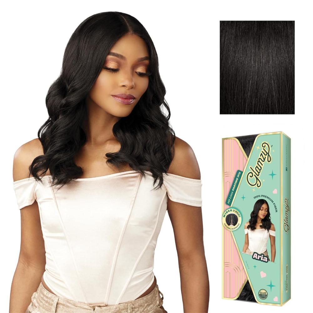 Sensationnel Glamzy Lace Part Wig – Aria Glueless Hand Tied Wider V Parting Synthetic Hair (1 JETBLACK)(1B OFFBLACK)