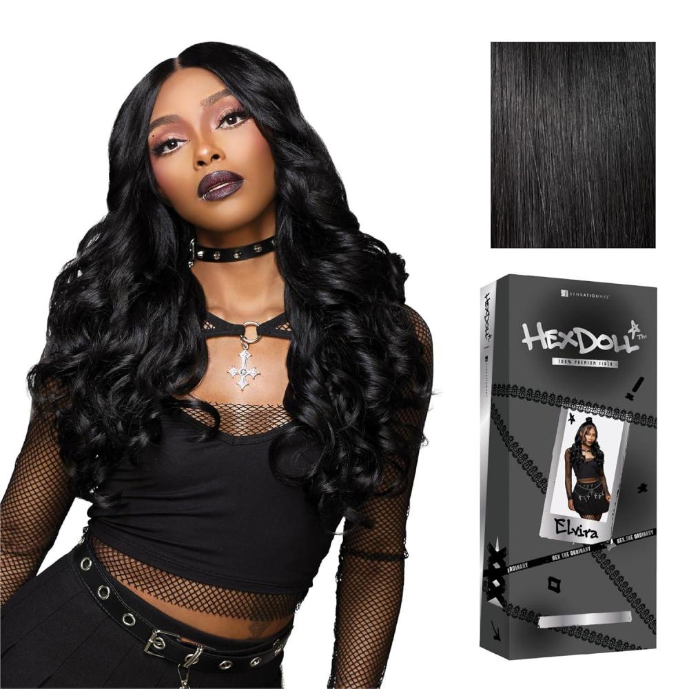 Sensationnel HexDoll 13X4 Lace Wig – Elvira Lacefrontal Glueless Synthetic with Natural Density Preplucked Hairline (1 JETBLACK)(1B OFFBLACK)