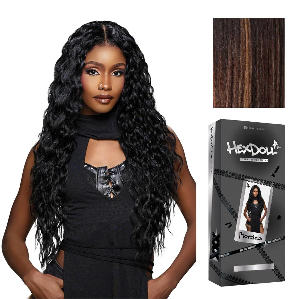 Sensationnel HexDoll 13X4 Lace Wig – Morticia Lacefrontal Glueless Synthetic with Natural Density Preplucked Hairline (1 JETBLACK)(BALAYAGEHAZELNUT)