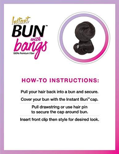 Sensationnel Instant bun with bangs is a synthetic pony up do hair extension wig piece. It offers a quick, simple, and stylish fashion-forward look instantly. It is Affordable and easy to maintain and also heat safe up to 350~400 degrees.