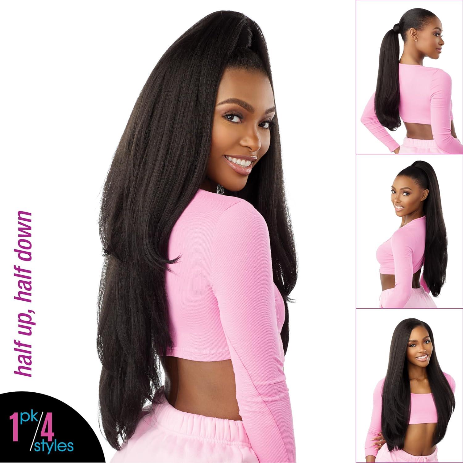 Brand : Sensationnel Instant Up and down unique 4 style in 1 solution with a half wig and pony tail wrap in one single pack.