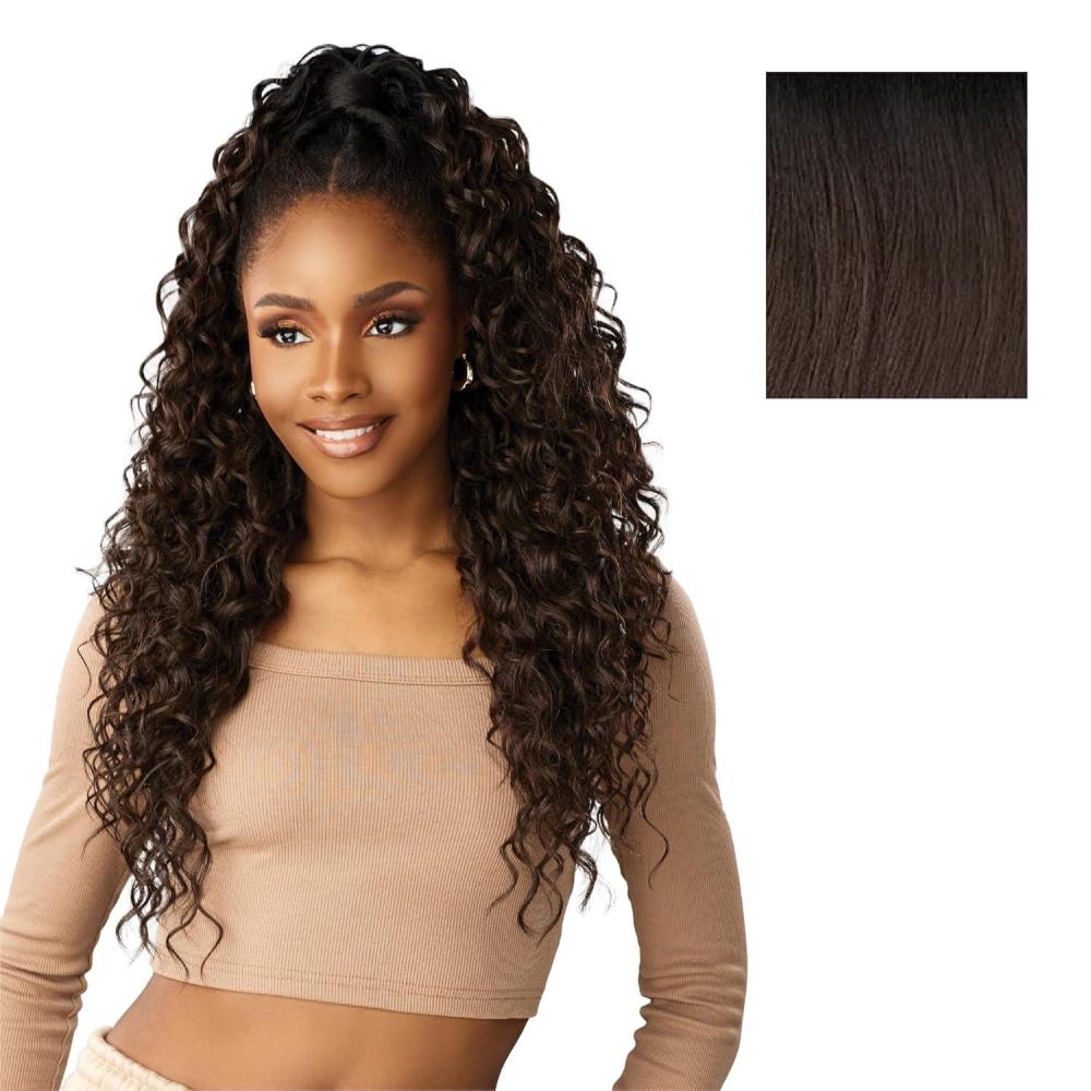 Instant Up and Down by Sensationel is all about variety and versitility. Instant weave UD is a half wig and pony wrap hairpiece that gives you 4 styles in 1 single pack. It can be styled half up and half down, just as a half wig, or just as a ponytail drawstring. This half wig unit is easy to style in just 4 steps, giving you a sleek finished look in no time. Featuriong 4 style variations and basic and two-tone color options.
