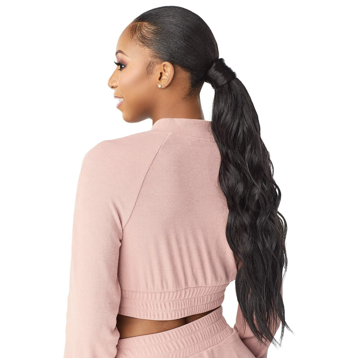 Instant Up and Down by Sensationel is all about variety and versitility. Instant weave UD is a half wig and pony wrap hairpiece that gives you 4 styles in 1 single pack. It can be styled half up and half down, just as a half wig, or just as a ponytail drawstring. This half wig unit is easy to style in just 4 steps, giving you a sleek finished look in no time. Featuriong 4 style variations and basic and two-tone color options.