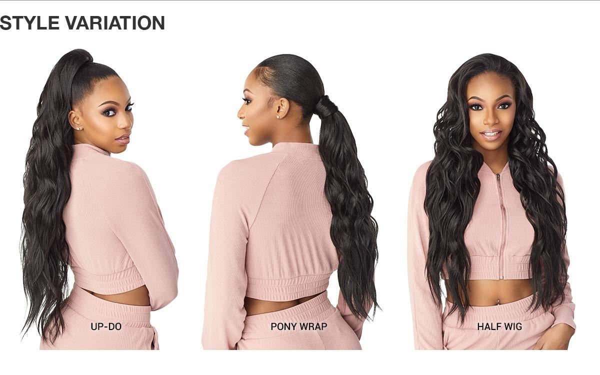 Brand : Sensationnel Instant Up and down unique 4 style in 1 solution with a half wig and pony tail wrap in one single pack.