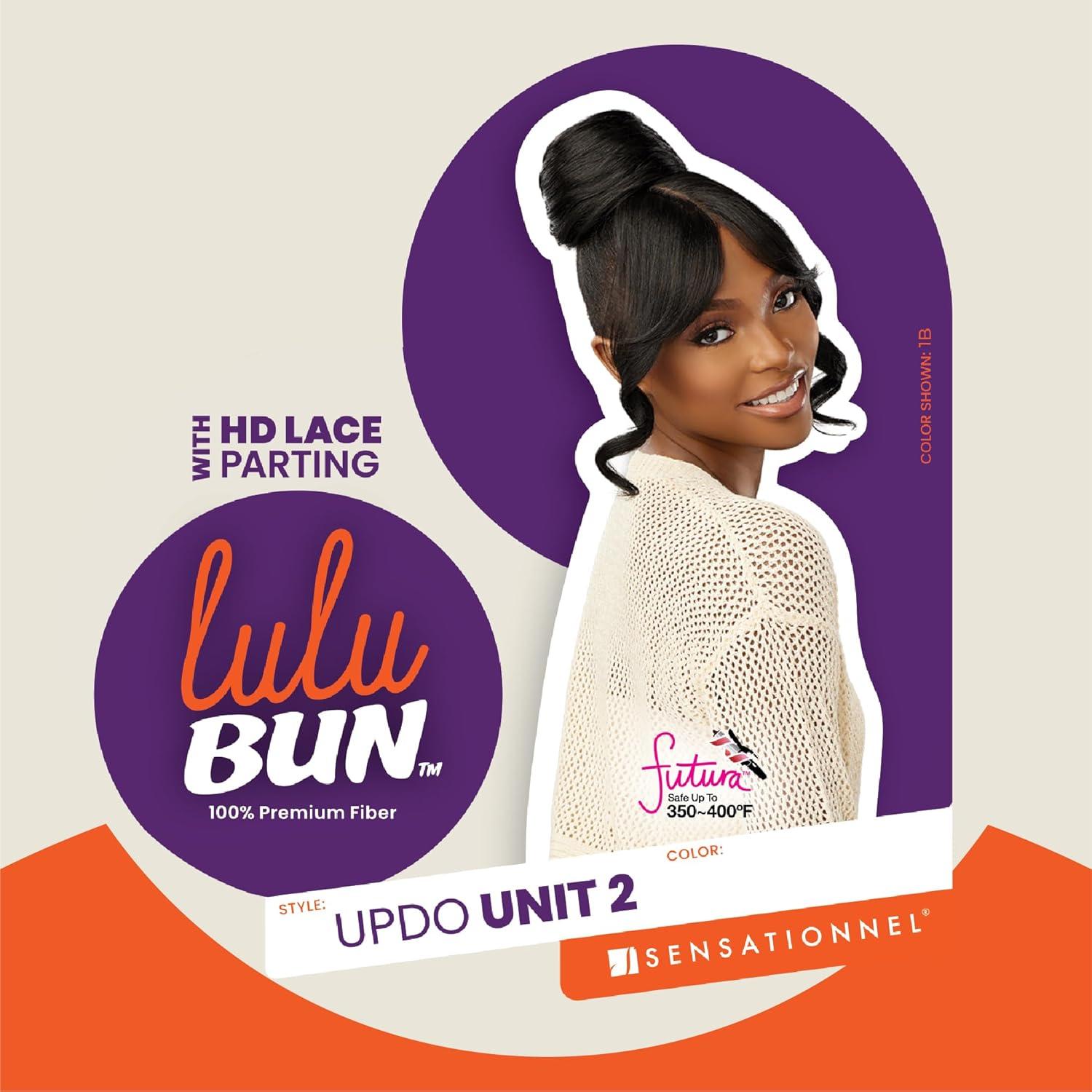 Sensationnel Lulu bun updo hairextensions – unit 2 synthetic 3×3.5 hd lace parting quick and easy wear hair wig piece (1 JETBLACK)(F1B/BG)