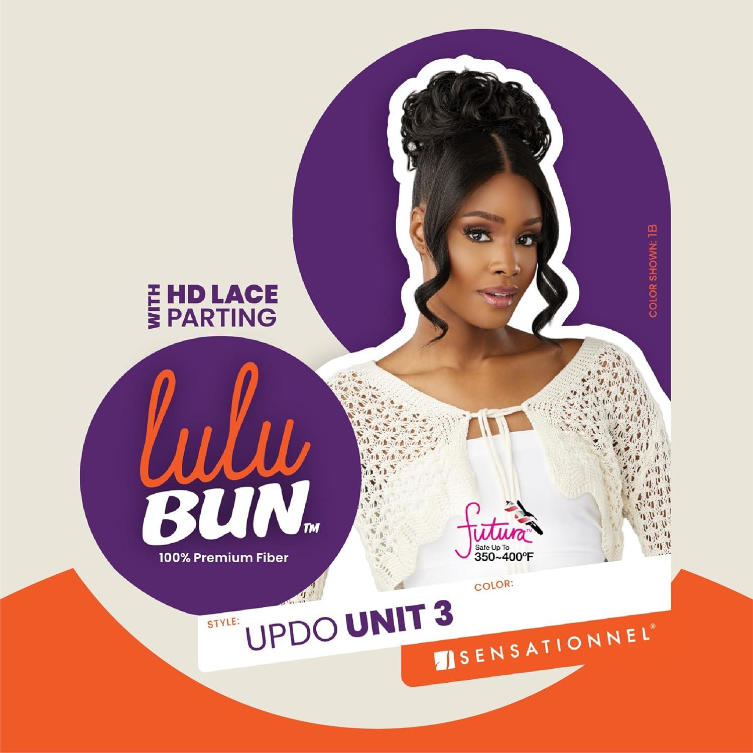 Sensationnel Lulu bun updo hairextensions – unit 3 synthetic 3×3.5 hd lace parting quick and easy wear hair wig piece (1B OFFBLACK)(1B OFFBLACK)