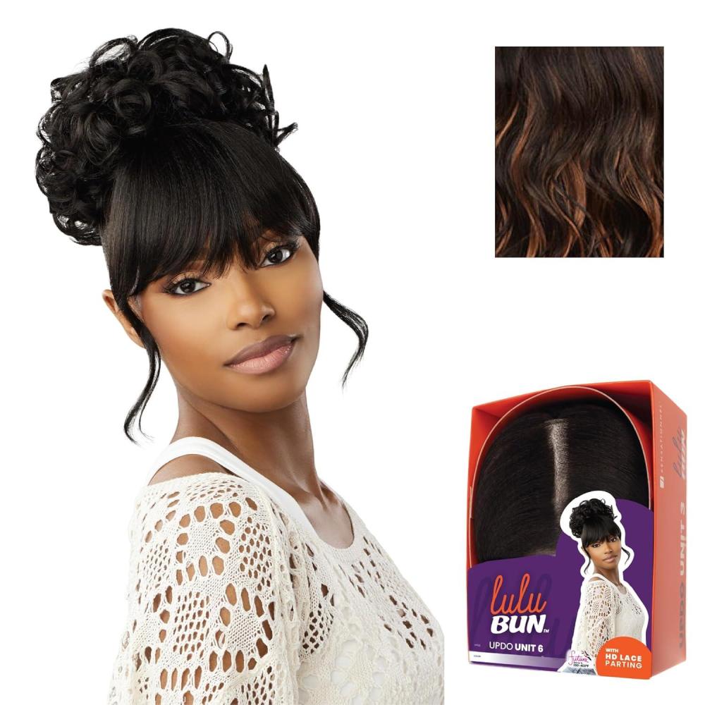 Sensationnel Lulu Bun Updo Hairextensions – Unit 6 Synthetic 3×3.5 HD Lace Parting Quick and Easy Wear Hair Wig Piece (1 JETBLACK)(F1B/27)