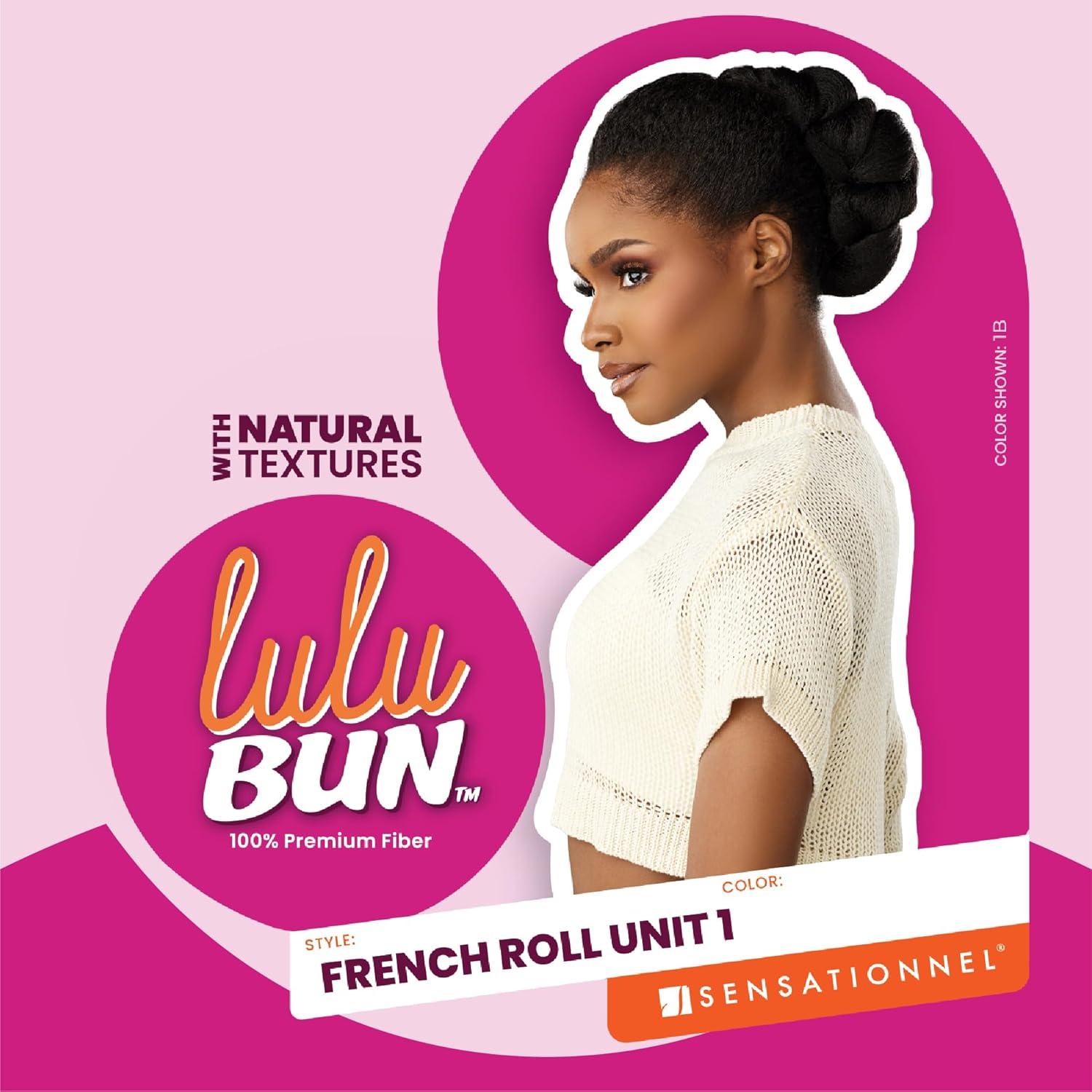 Sensationnel LuluBun Updo Hairextensions – French Roll Unit 1 Synthetic Hard Shell Bun with Clips Quick and Easy Wear Hair Wig Piece (1 JETBLACK)(M44)