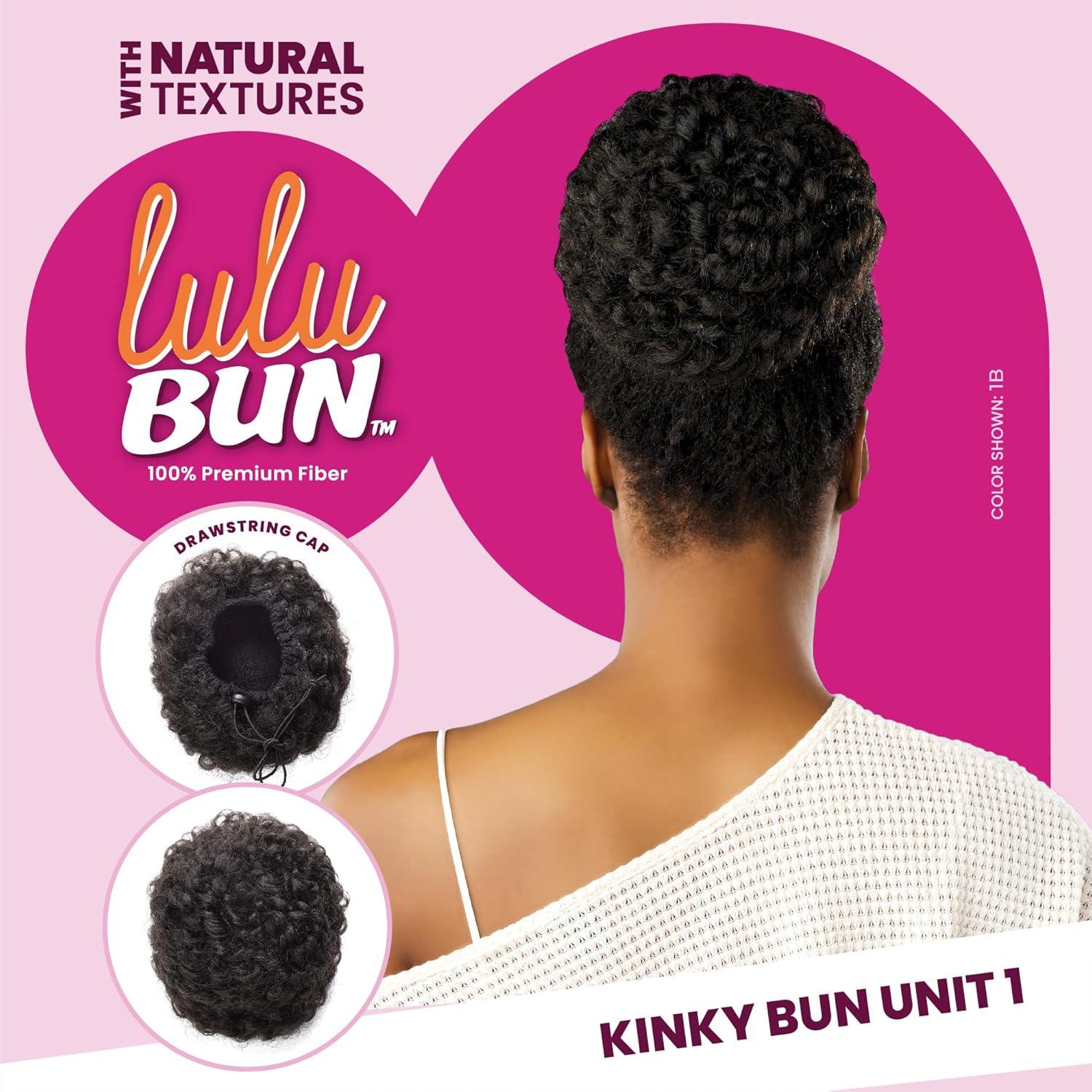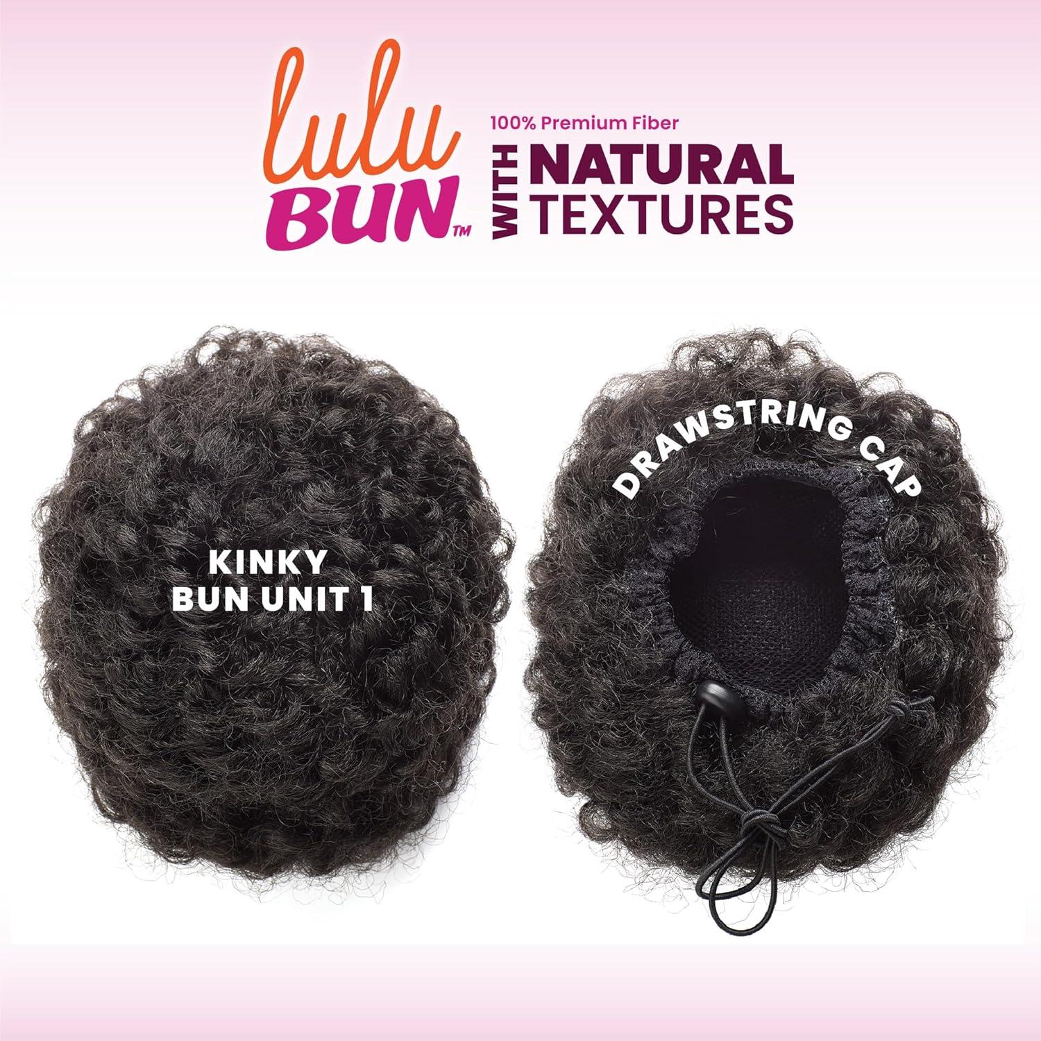 Sensationnel LuluBun Updo Hairextensions – Kinky Bun Unit 1 Synthetic Drawstring Cap Quick and Easy Wear Hair Wig Piece (1 JETBLACK)(2 DARKBROWN)