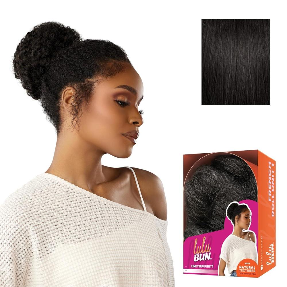 imageSensationnel LuluBun Updo Hairextensions  Kinky Bun Unit 1 Synthetic Drawstring Cap Quick and Easy Wear Hair Wig Piece 1 JETBLACK1 JETBLACK
