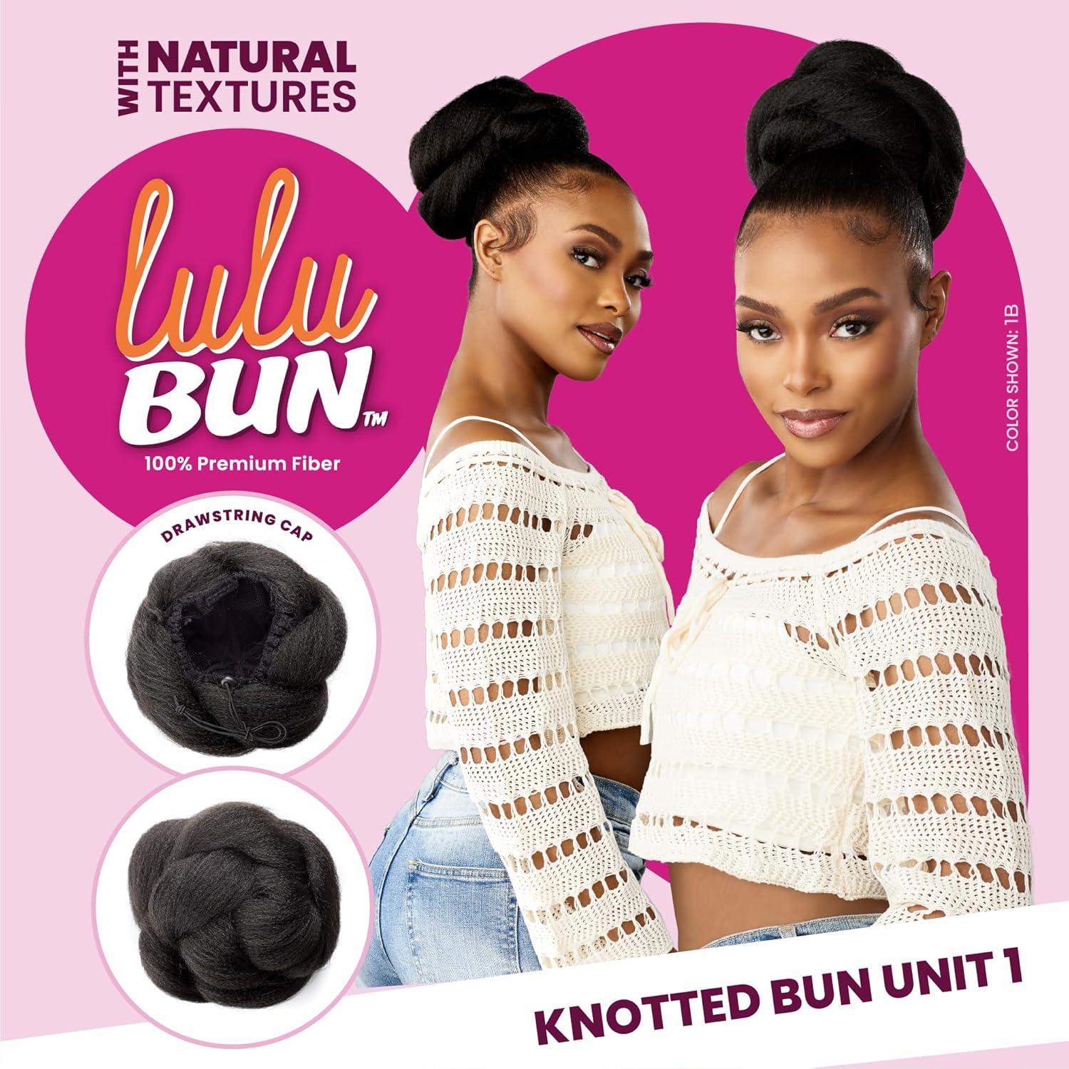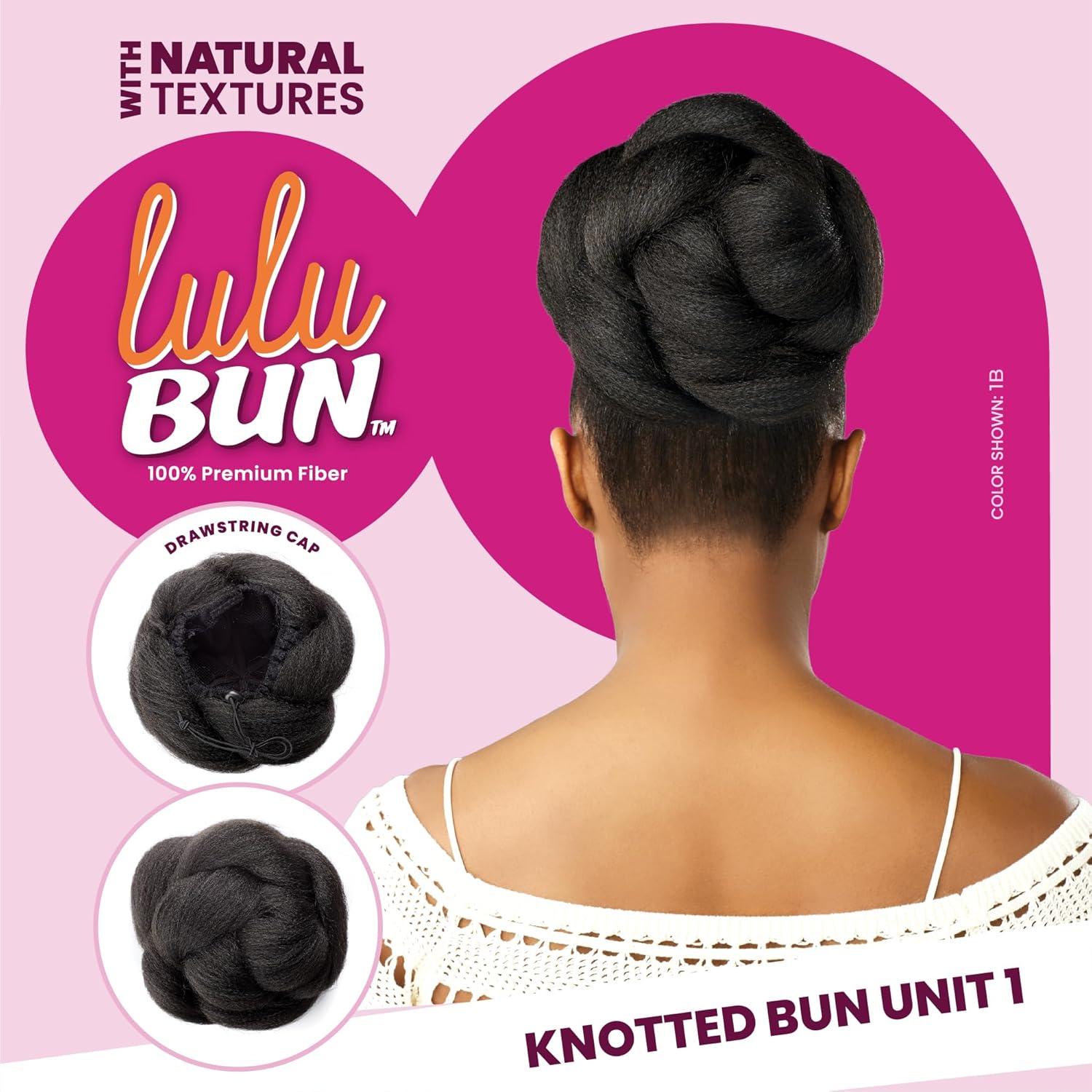 Sensationnel LuluBun Updo Hairextensions – Knotted Bun Unit 1 Synthetic Drawstring Cap Quick and Easy Wear Hair Wig Piece (1 JETBLACK)(2 DARKBROWN)