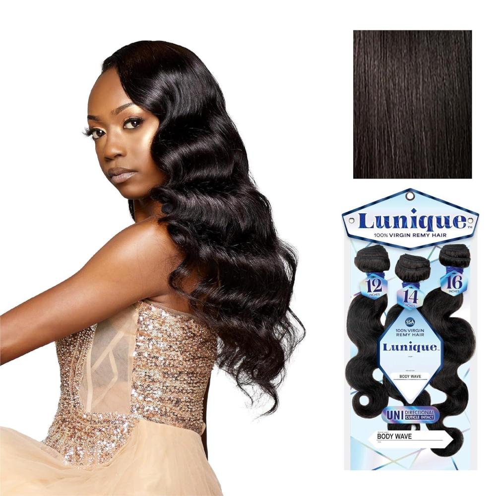 Sensationnel Lunique Multi Weave Hair – Body Wave 15A Remyhair 3 Bundle Layered Lengths for Weaving and Sew in Styles (10 12 14 inch, NATURAL)(NATURAL/BLACK)