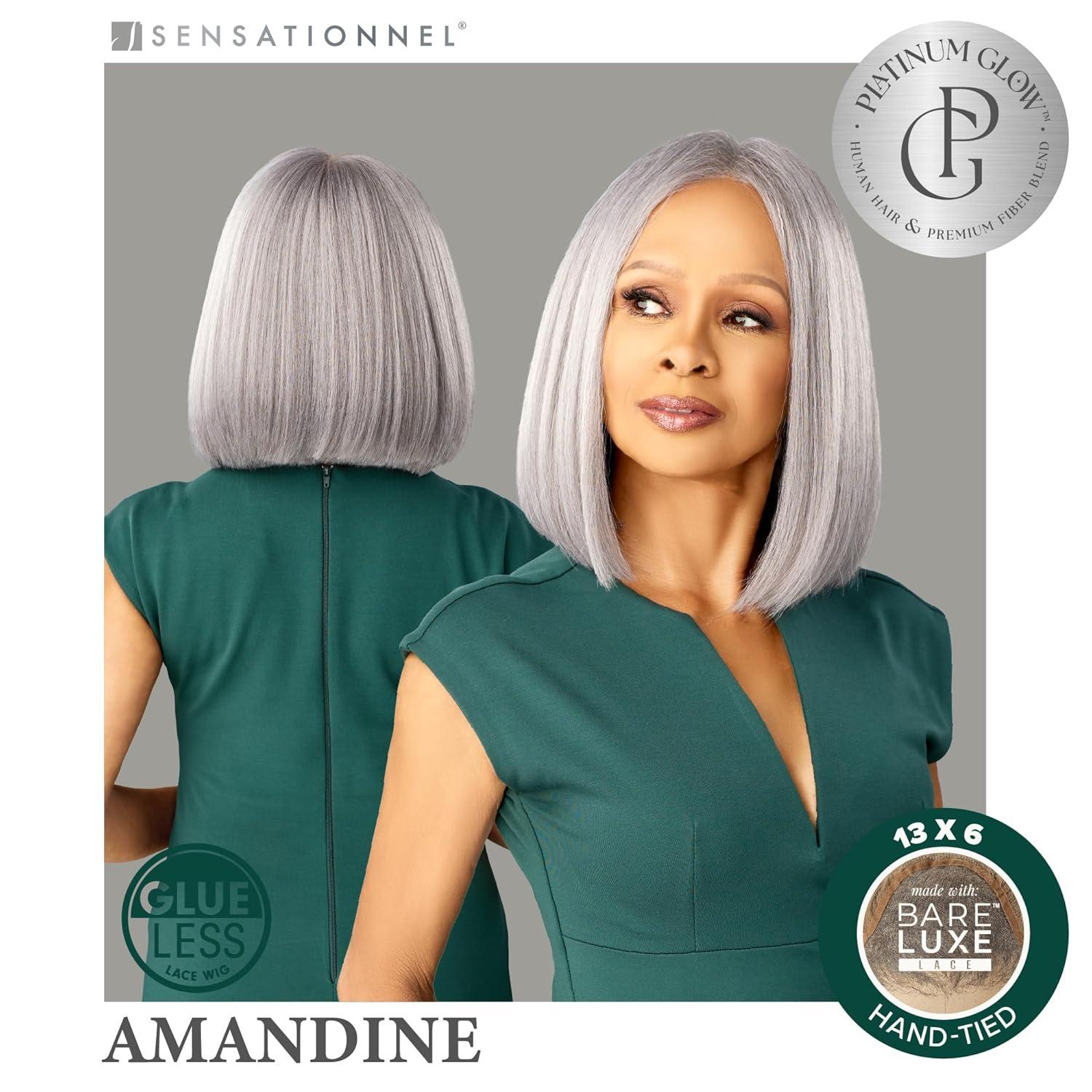 Sensationnel Platinum Glow 13X6 Wig – Amandine Lace frontal Glueless human hair blend Preplucked Hairline (1 JETBLACK)(2 DARKBROWN)