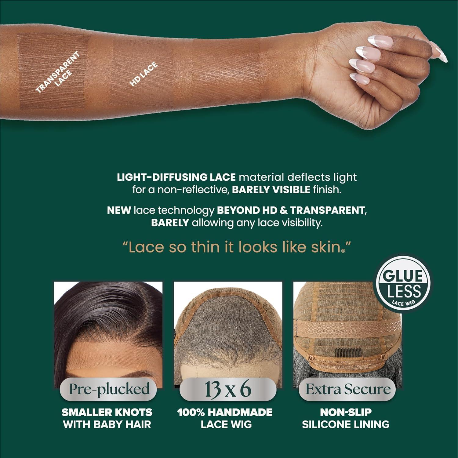 Features: 20 percent Larger grid pattern and 40 percent Thinner lace design, which allows an advanced clear transparent non-reflective and non lift lace. Combined with a breathable mesh cap with glueless wig band and silicone lining for secure install.
