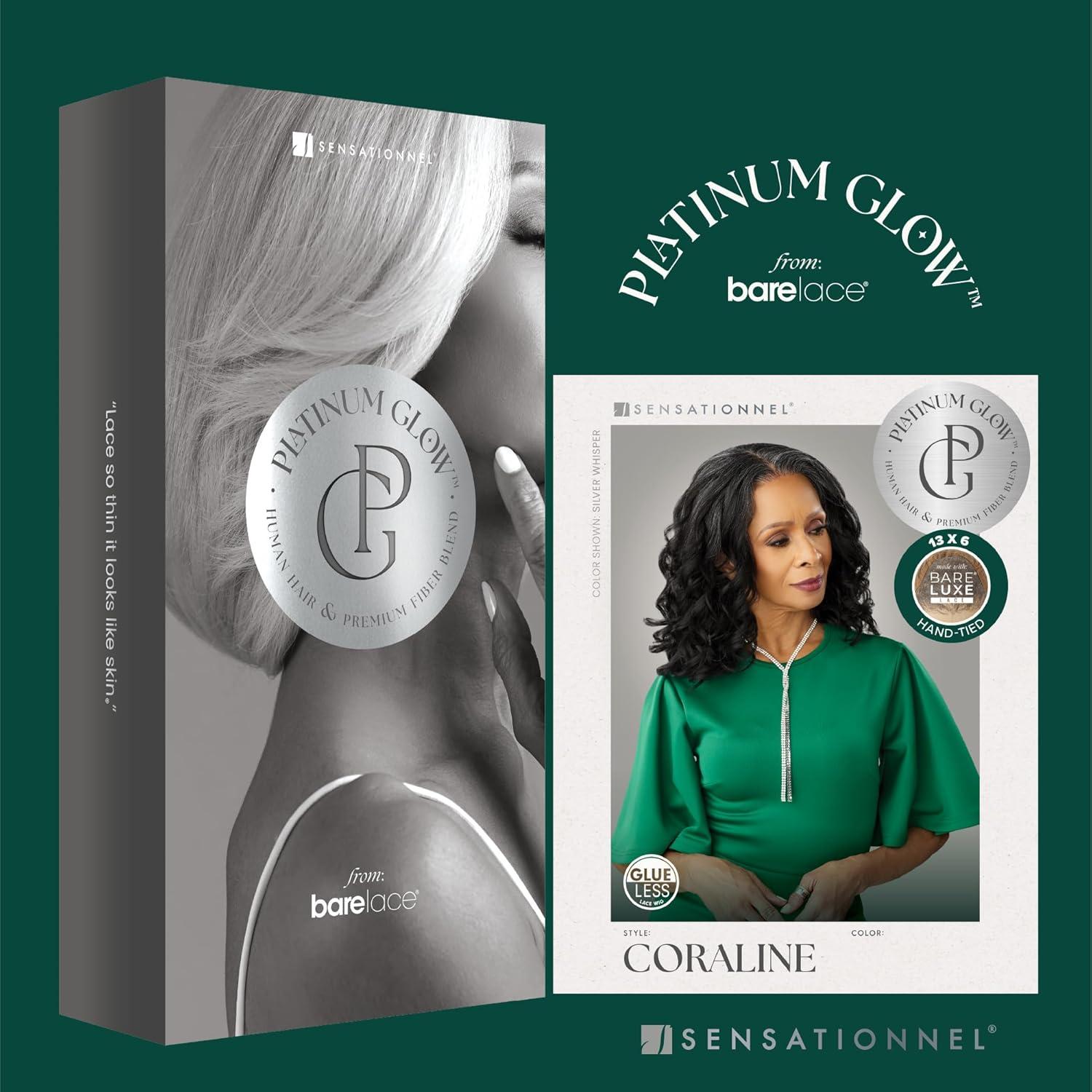 Sensationnel Platinum Glow 13X6 Wig – Coraline Lacefrontal Glueless human hair blend Preplucked Hairline (1 JETBLACK)(SILVERWHISPER)