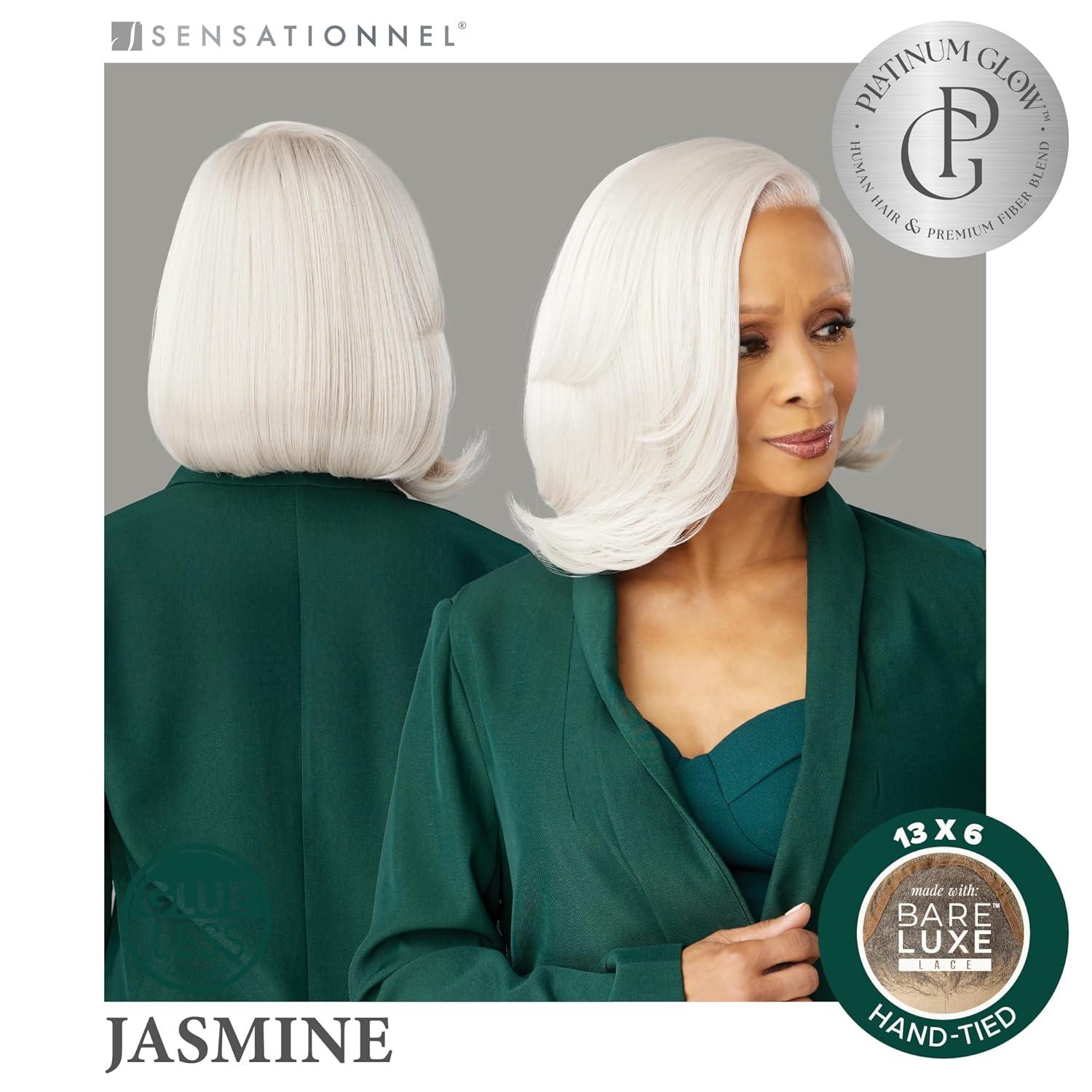 Sensationnel Platinum Glow 13X6 Wig – Jasmine Lacefrontal Glueless human hair blend Preplucked Hairline (1 JETBLACK)(LUXEBLONDE)