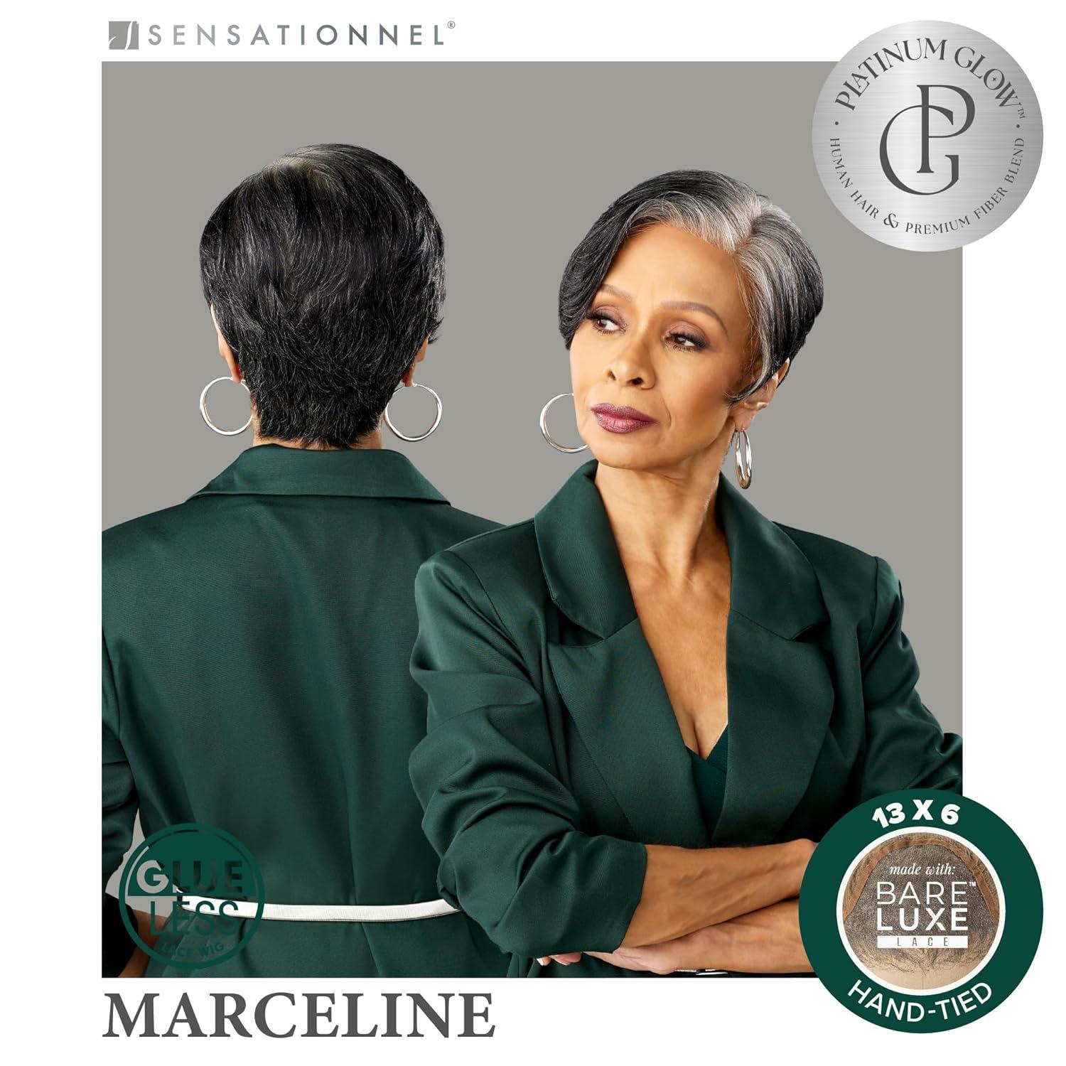 Sensationnel Platinum Glow 13X6 Wig – Marceline Lacefrontal Glueless human hair blend Preplucked Hairline (1 JETBLACK)(2 DARKBROWN)