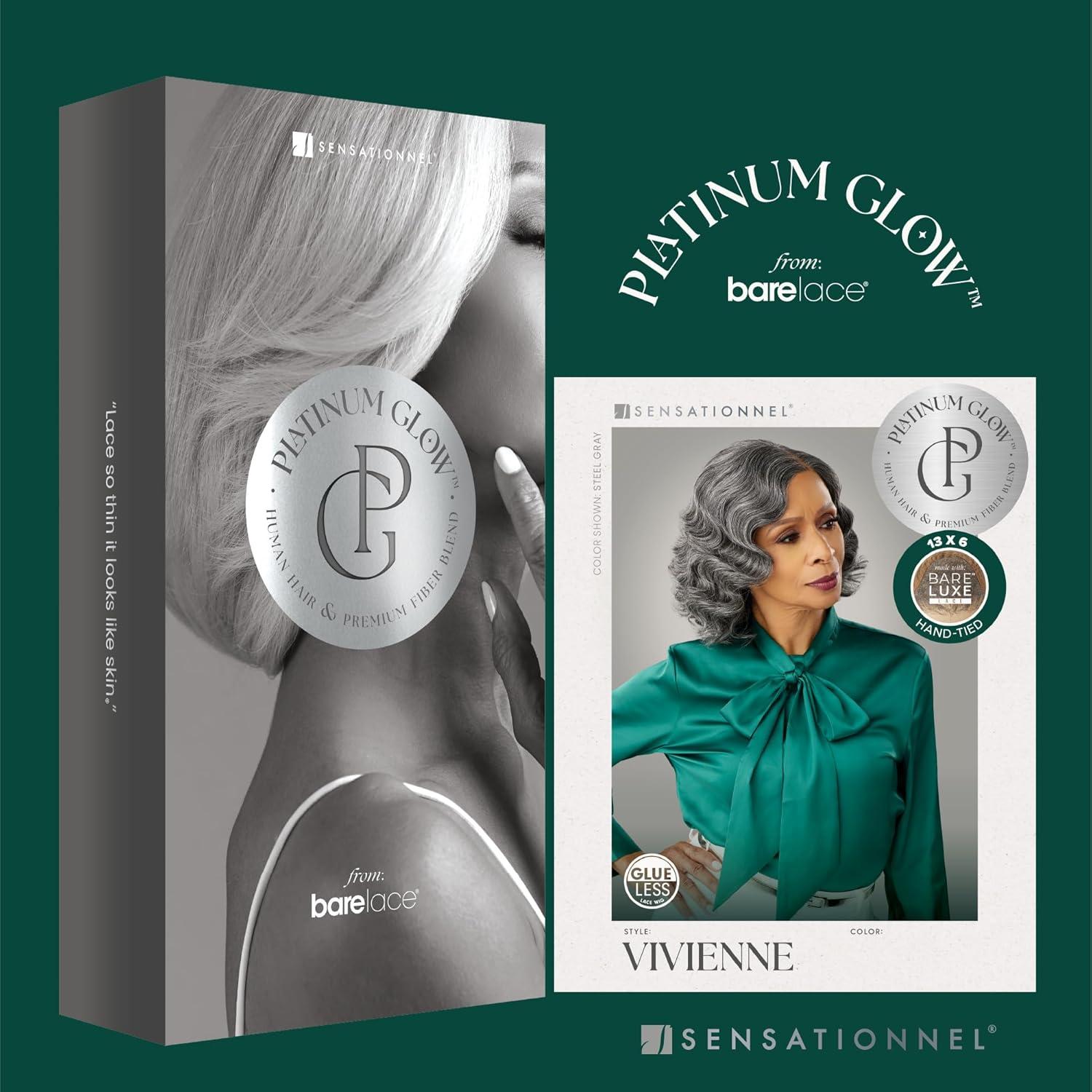 Sensationnel Platinum Glow 13X6 Wig – Vivienne Lacefrontal Glueless human hair blend Preplucked Hairline (1 JETBLACK)(1B OFFBLACK)