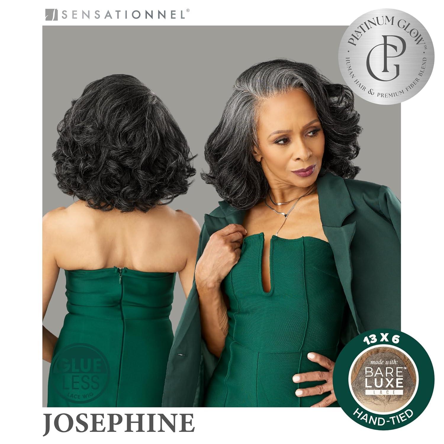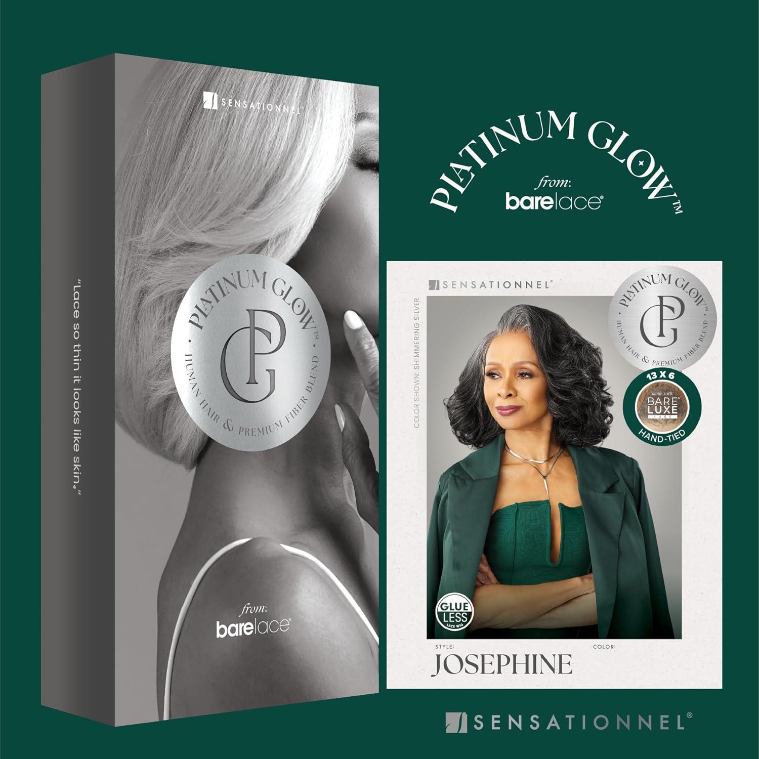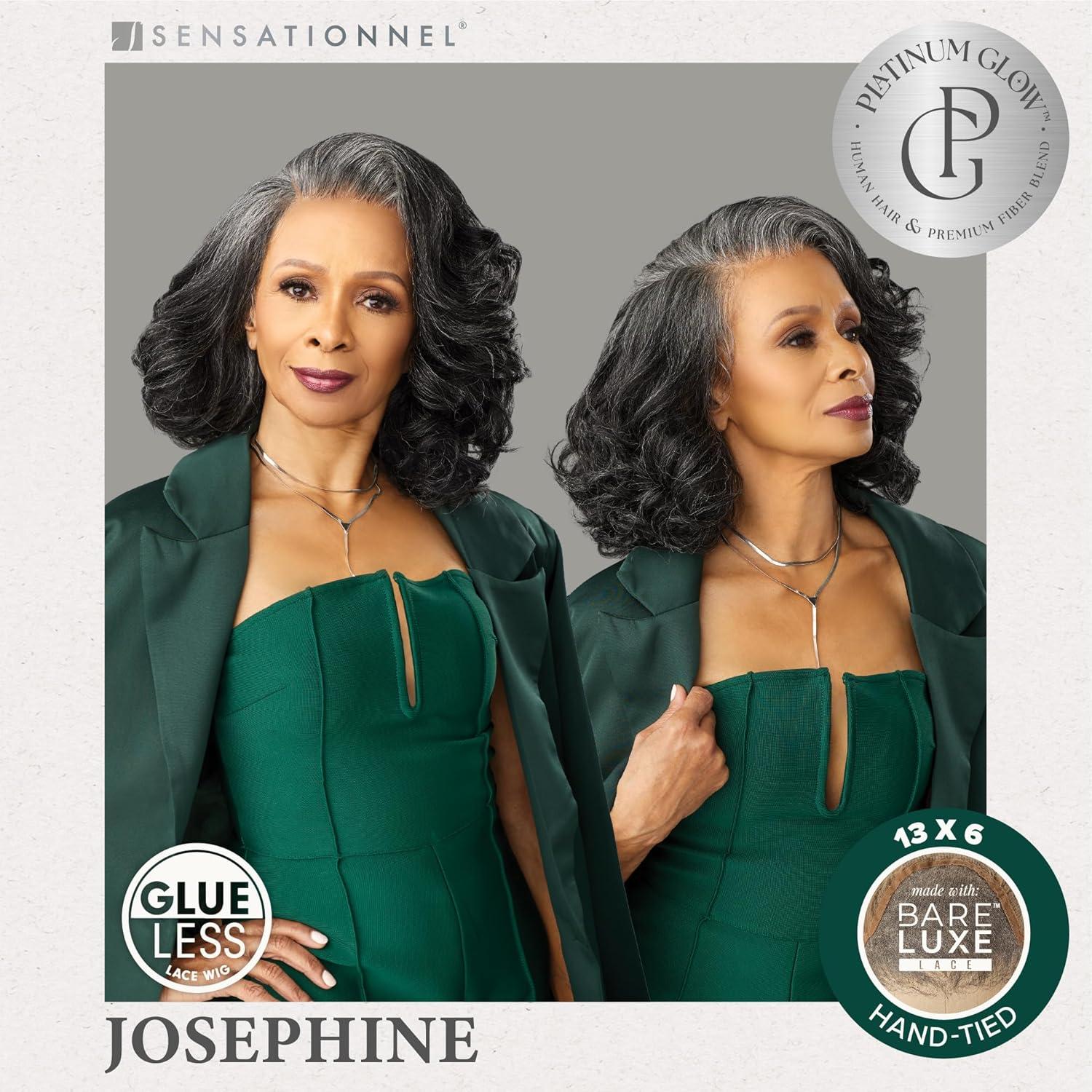 Sensationnel Platinum Glow 13X6 Wigs – Josephine Lacefrontal Glueless human hair blend Preplucked Hairline (1 JETBLACK)(SILVERWHISPER)