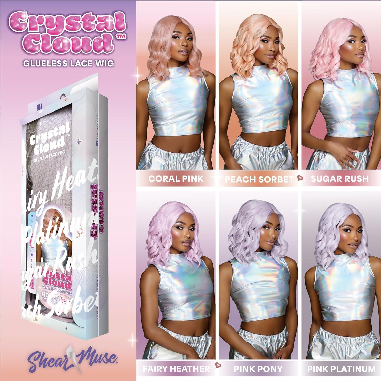 Sensationnel ShearMuse Crystal Cloud Lace Wigs – Lustra Wide 5 Inch Deep Parting Synthetic Preplucked Hairline Glueless Lacefront (CORALPINK)(FAIRYHEATHER)