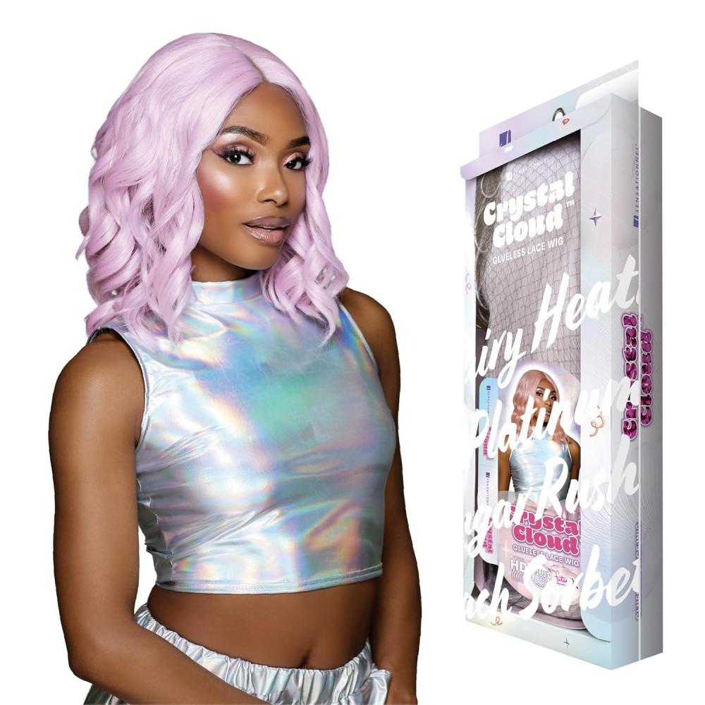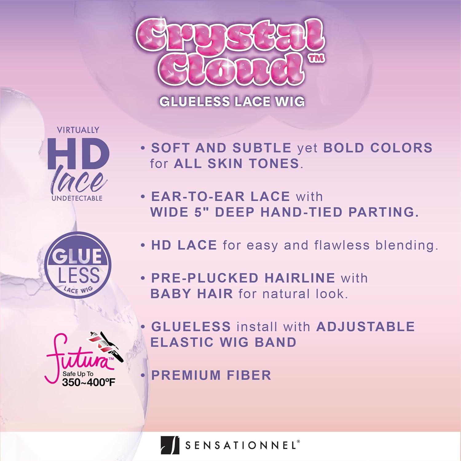 Brand:Sensationnel Shear Muse Crystal Cloud lace Glueless Synthetic Hair Ear to Ear Lace with 5 inch deep lace frontal pre-plucked hairline HD lace wig