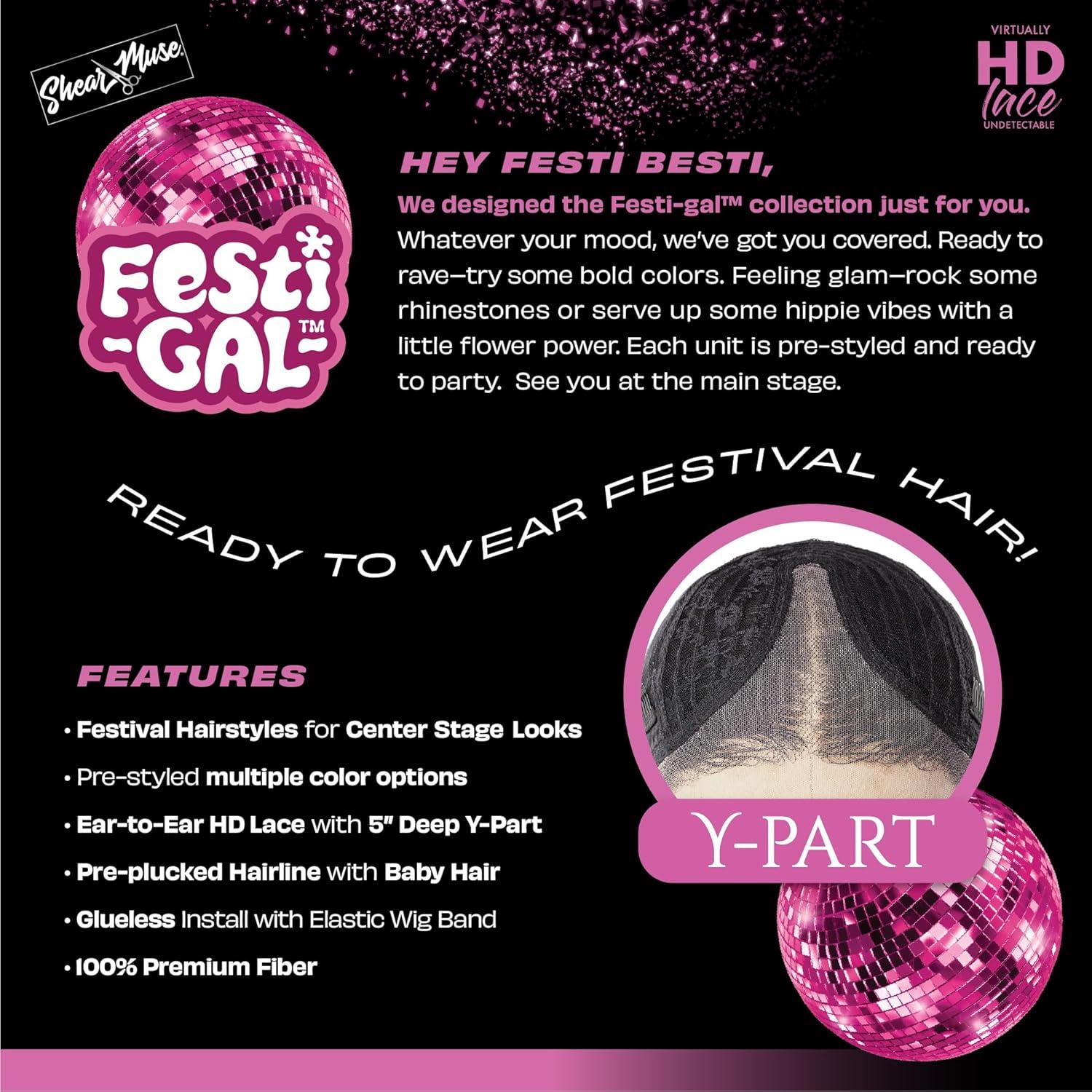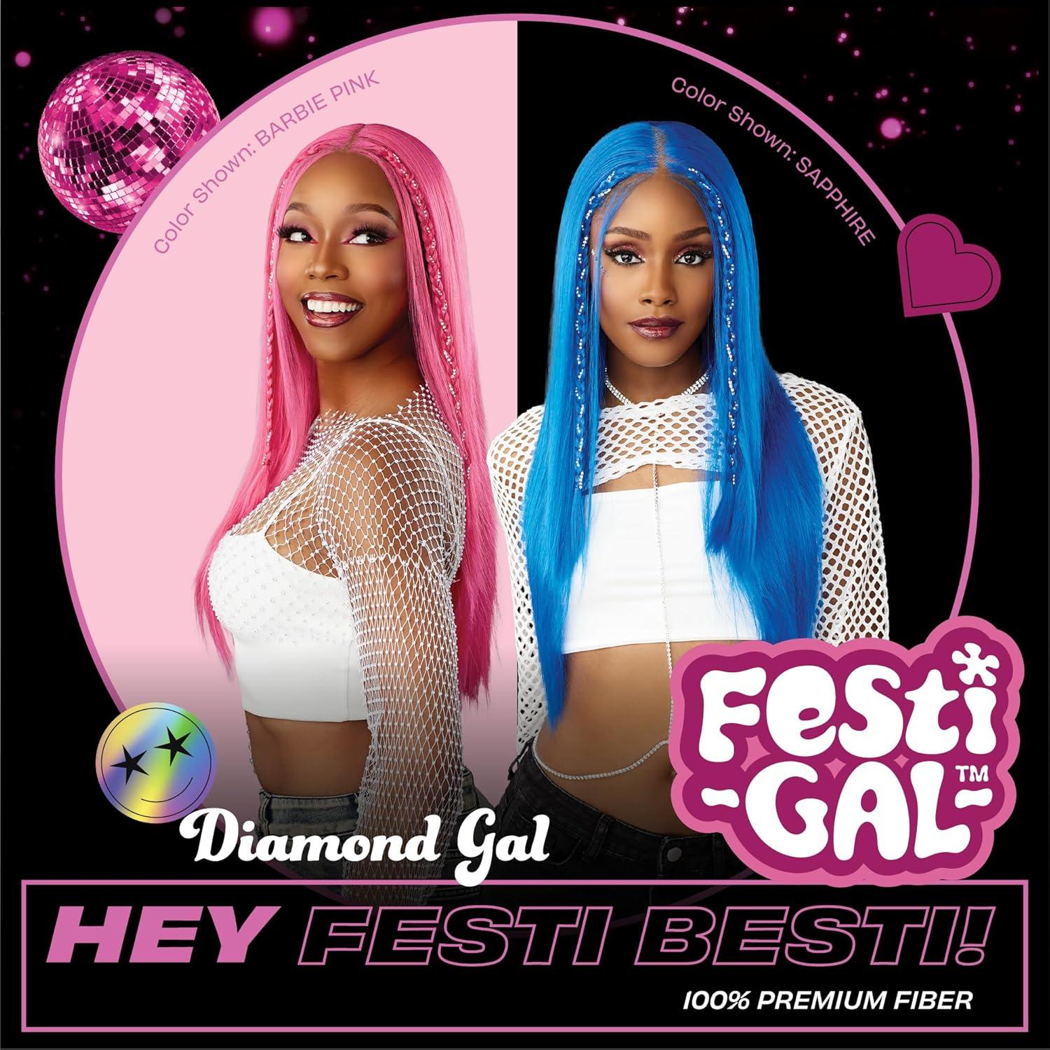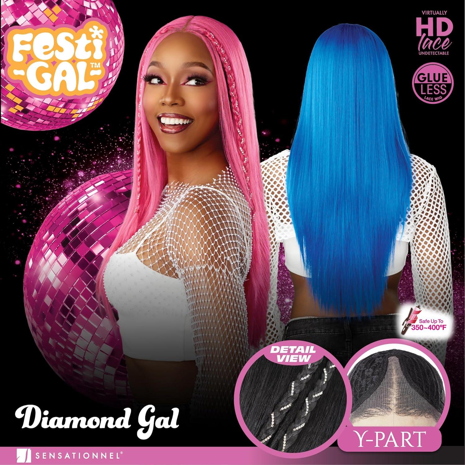 Sensationnel Shearmuse Festigal Lacewig – Diamond Gal Glueless Ypart Laceparting Hand Tied Ready to Wear Synthetic Prestyled Units (BARBIEPINK)(BLACK)