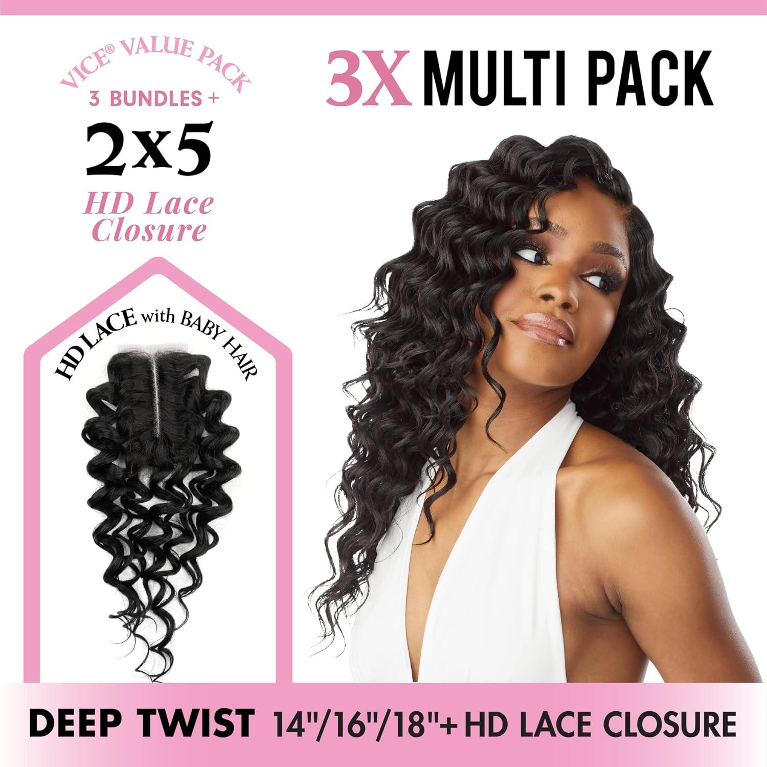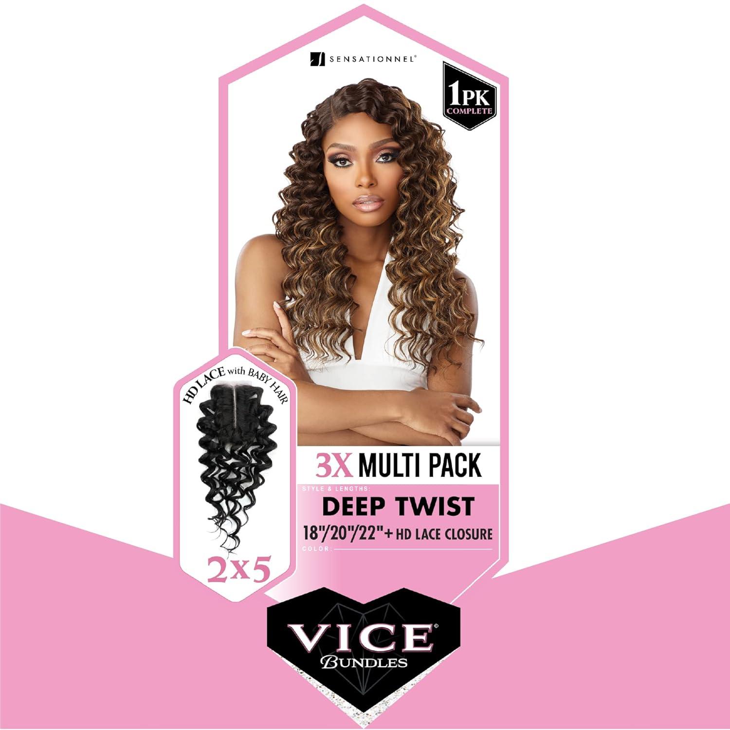 Sensationnel Vice bundles multi weaving – deep twist synthetic virgin hair dupe bundle hair layered with 2×5 Lace Closure (14 16 18 Inch, BALAYAGEBLONDE)(T2/27)