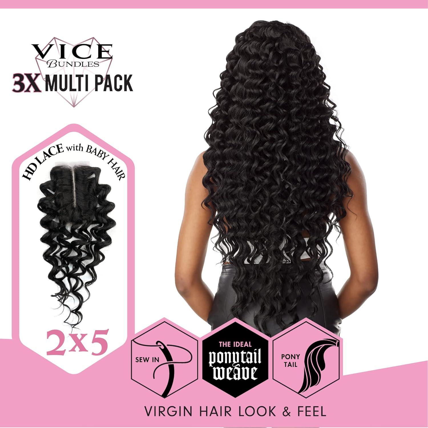 Sensationnel Vice Bundle multi pack quick weave sew in pony tail pony wrap weaving hair extension styles includes 2×5 Hand tied Lace Closure